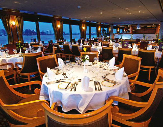 An Bord von MS River Explorer erwartet Sie eine elegante, exklusive Atmosphäre. Vom lichtdurchfluteten Panorama-Salon, der gemütlichen Bar oder dem weitläufigen Sonnendeck aus genießen Sie die vorbeiziehenden, malerischen Flusslandschaften. Im eleganten Panorama-Restaurant verwöhnt Sie die geschulte Besatzung mit nationalen und internationalen Spezialitäten.