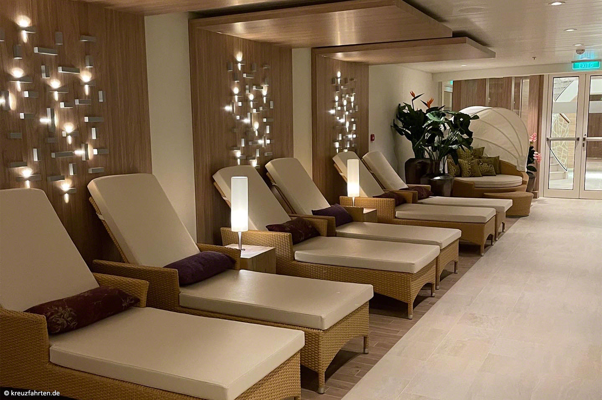Gut ausgeruht sorgen etwas Bewegung und Wellness für immens gute Laune – und dafür bietet das neue Flaggschiff von AIDA die besten Voraussetzungen. Das moderne Kreuzfahrtschiff über den Wellnessbereich Body & Soul Organic Spa. Aromasauna, Fußreflexzonenmassage, Lomi Lomi, Karibische Wohlfühlbehandlung oder Körperpackungen im Wasserbett sind nur einige der Möglichkeiten, um vollends abzuschalten und den Stress des Alltags hinter sich zu lassen. Sie können ganz nach Gusto aus über 80 Angebote rund um Pflege und Schönheit wählen. Natürlich gibt es auch einen Friseur sowie Maniküre/Pediküre und einen beeindruckenden Infinitypool. Hinzu kommen verschiedene Ruhezonen, Sonnendecks und weitere Bereiche, die geradezu dazu auffordern, die Seele baumeln zu lassen. Hinweis: Anwendungen und Zutritt zum Wellnessbereich sind nicht im Reisepreis inkludiert.