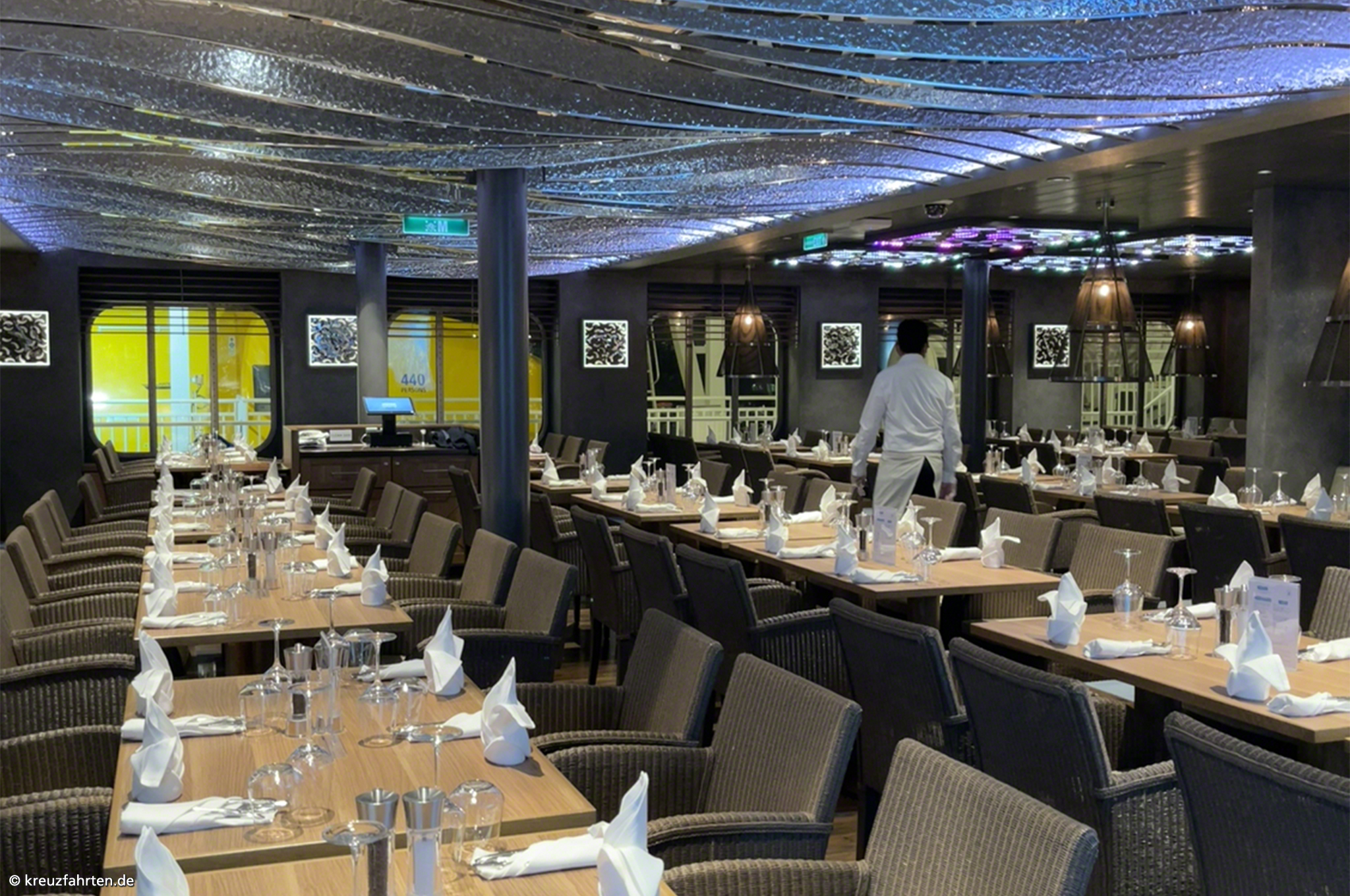 Wer dann doch lieber bei erstklassigem Service am Tisch bedient werden möchte, besucht beispielsweise das asiatische East Restaurant, Best Burger@Sea oder das Brauhaus - alle Speisen sind auch in diesen Restaurants im Reisepreis inkludiert. Die Brasserie French Kiss, das Fischrestaurant Ocean´s und das venezianische Restaurant Ristorante Casa Nova besuchen Sie ebenfalls, ohne Ihr Bordkonto bei der Speisebestellung weiter belasten zu müssen. Allerdings sind nicht in allen Lokalen die Tischgetränke inklusive, sondern kosten einen Aufpreis.