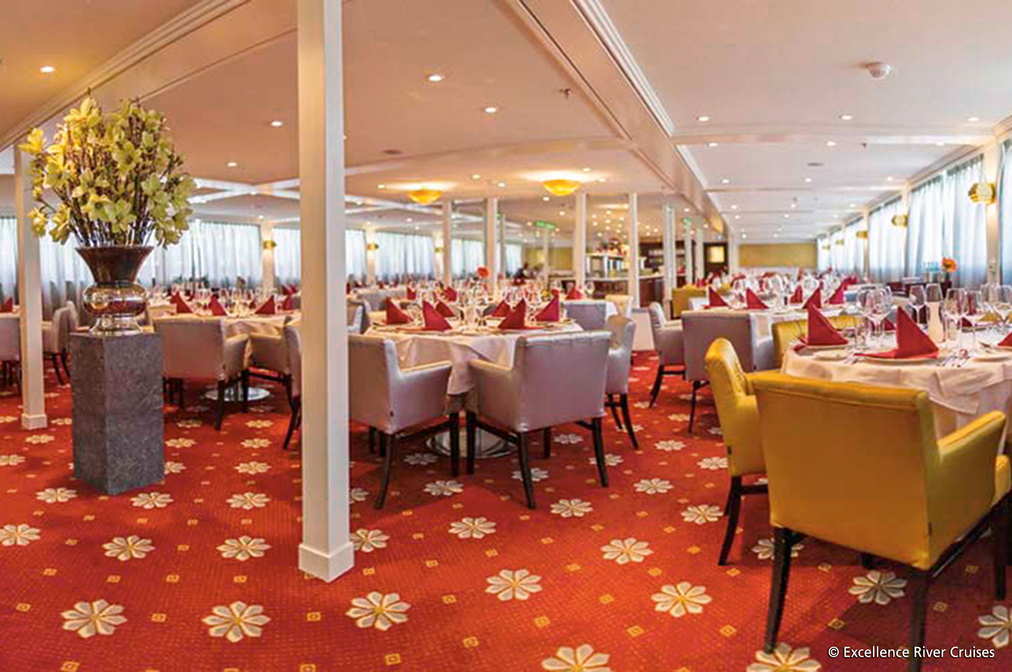 2011 war das Jahr, in dem die 110 Meter lange MS Excellence Queen vom Stapel lief und ihre Jungfernfahrt unternahm. In den 71 Kabinen, verteilt auf vier Decks, finden 142 Personen Platz. Auf diesem eher kleinen Schiff herrscht eine gemütliche, familiäre Stimmung, in der jeder Gast nach Herzenslust entspannen kann.