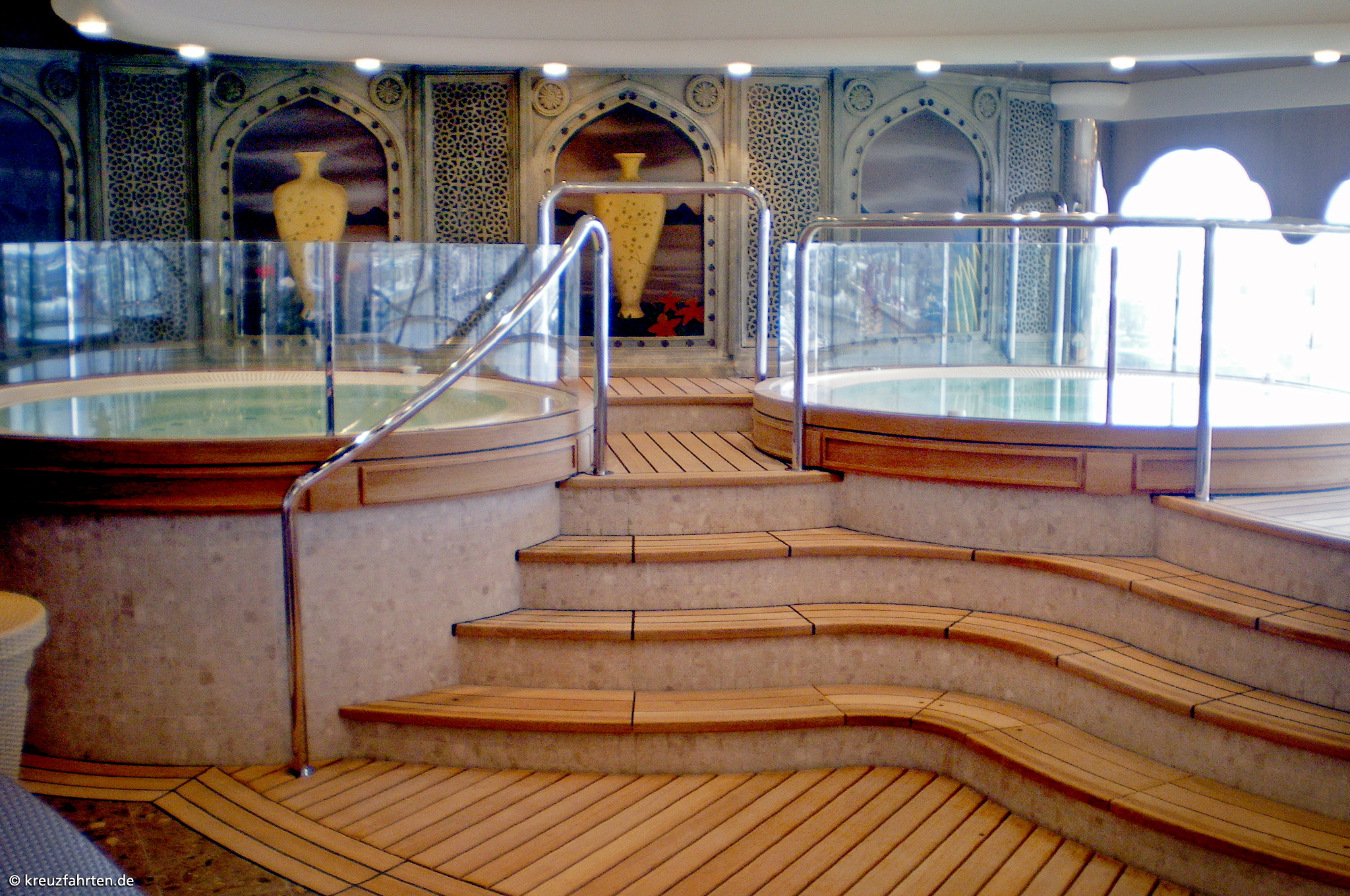 Nach einem ausgiebigen Training oder einfach nur um die letzten Alltagssorgen ganz weit hinter sich zu lassen, eignet sich ein Besuch im MSC Aurea SPA im balinesischen Stil mit seinen zahlreichen Wellnessanwendungen und Schönheitsbehandlungen. Saunafans nutzen die verschiedenen Schwitzstuben – beispielsweise die finnische Variante oder das Dampfbad.