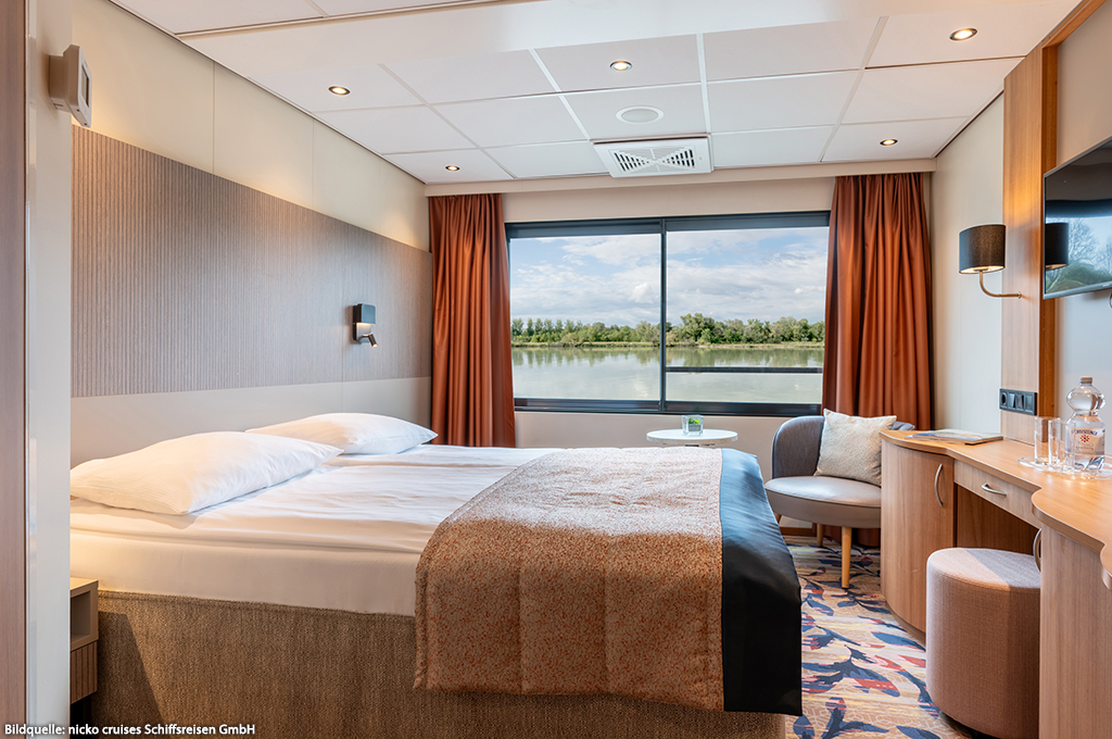 Der Fluss der Legenden ruft! Hinter jeder Biegung wartet ein neues Abenteuer, wenn die bis zu 196 Gäste eine Flussreise mit der RHEIN SYMPHONIE unternehmen. Die Kabinen des nicko cruises Schiffes werden zur Wohlfühloase, während es verschiedene romantische Schauplätze und beliebte Hotspots entlang des Rheins passiert. Vom imposanten Schloss über idyllische Uferpromenaden bis zur internationalen Metropole – hier erleben Reisehungrige Geschichte, Sightseeing und Natur in atemberaubender Harmonie. An Bord der RHEIN SYMPHONIE wird es ebenfalls nicht langweilig. Livemusik, Quizshows oder entspannte Abende auf dem Außendeck lassen den aufregenden Tag ruhig ausklingen.