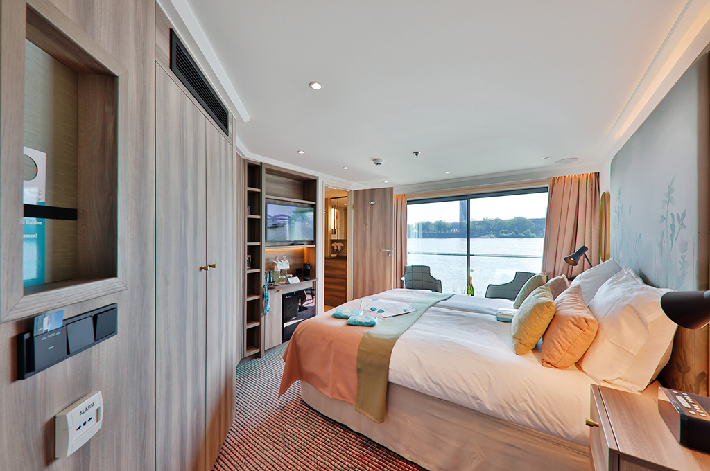 Der Flusskreuzer besitzt auf 4 Passagierdecks Platz für 190 Gäste in 74 komfortablen und modern eingerichteten Außenkabinen (die meisten davon sind mit einem französischen Balkon ausgestattet). Die Kabinen auf der MS Antonia sind für Flusskreuzfahrtschiffe typisch komfortabel und effizient gestaltet. Die Einrichtung ist modern und zweckmäßig, mit Annehmlichkeiten wie Klimaanlage, Fernseher und ausreichend Stauraum. Die jeweilige Lage der Kabinen auf der MS Antonia können Sie dem Kabinenplan entnehmen.