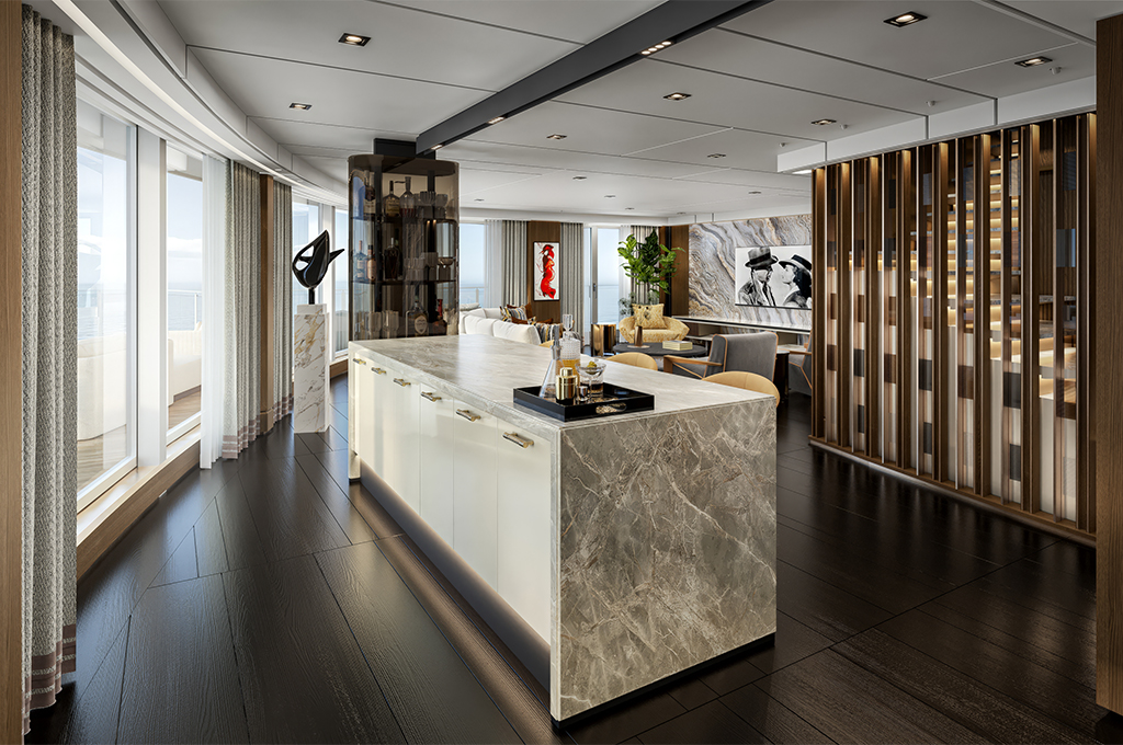 411 Balkonsuiten versprechen den wortwörtlichen Himmel auf dem Meer. Neu sind auf der Seven Seas Prestige die Skyview Suiten mit eigenem Außendeck, die Grand Loft Suites für alle, die sich zweigeschossige Großzügigkeit wünschen, und die neu gestaltete Regent Suite, die erneut Maßstäbe in Raum, Design und Service setzt. Das Designkonzept vereint warmen Luxus mit modernen Linien, sodass sich jeder Bereich wie ein privates Refugium anfühlt.