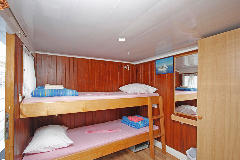 Die MS Kažimir, ein Meisterwerk traditioneller Schiffsbaukunst, verbindet Geschichte und Komfort auf einzigartige Weise. Ursprünglich im Jahr 1946 erbaut, wurde sie 2000 mit viel Liebe zum Detail modernisiert, sodass Gäste heute in einer der 15 stilvollen Kabinen mit Dusche/WC und Klimaanlage den Charme vergangener Zeiten erleben können. Auf dem eleganten und 39 Meter langen Motorsegler finden bis zu 32 Gäste Platz. Zu den Annehmlichkeiten an Bord der MS Kažimir aus dem Angebot von Reiseveranstalter Riva Tours gehören ein großzügiges Sonnendeck mit Liegestühlen, eine neue Lounge auf dem Oberdeck und ein Salon. Entspannen Sie bei herrlichem Panorama über das azurblaue Wasser und dem Charme der Hotspots, Inseln und Buchten der Adria. Die Familie Šango sorgt dafür, dass Sie sich rundum wohlfühlen – vom erstklassigen Service bis hin zu den liebevollen Details, die an Bord eine einzigartige Atmosphäre schaffen.
