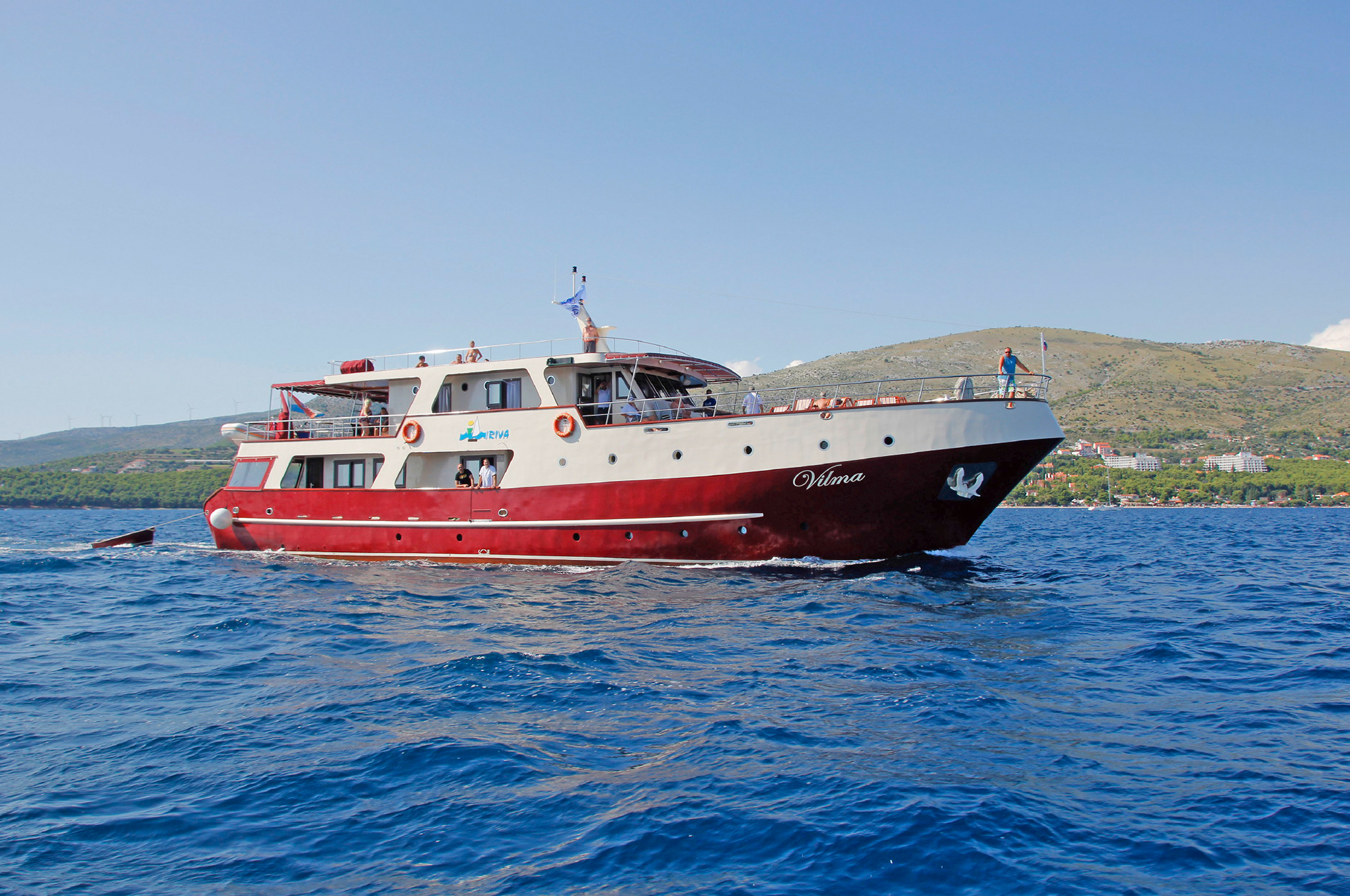 Die MY Vilma vereint familiäre Herzlichkeit mit dem Komfort einer modernen Motoryacht. Mit nur 28 Gästen an Bord bietet sie eine persönliche Atmosphäre und zugleich viel Raum für Erholung und Freizeit – etwa auf dem 200 Quadratmeter großen Sonnendeck, in der klimatisierten Lounge oder auf der gemütlichen Badeplattform am Heck, das zum Abkühlen im azurblauen Meer und zu diversen Wassersportunternehmungen einlädt. Die 13 komfortablen Kabinen verfügen über Klimaanlage, Dusche/WC, LCD-TV und Safe. Dank der kompakten Bauweise kann die Vilma auch kleinere Häfen ansteuern, die anderen Schiffen verschlossen bleiben – darunter das faszinierende Neretva-Delta mit Ausflugsmöglichkeiten nach Mostar. Kostenloses WLAN sowie Vollpension mit Frühstück und Mittagessen sind inklusive. Gebaut wurde die Vilma von Mario Novaković, heute steht mit seinem Sohn Antonio bereits die dritte Generation der nautischen Gastgeberfamilie an der Reling.