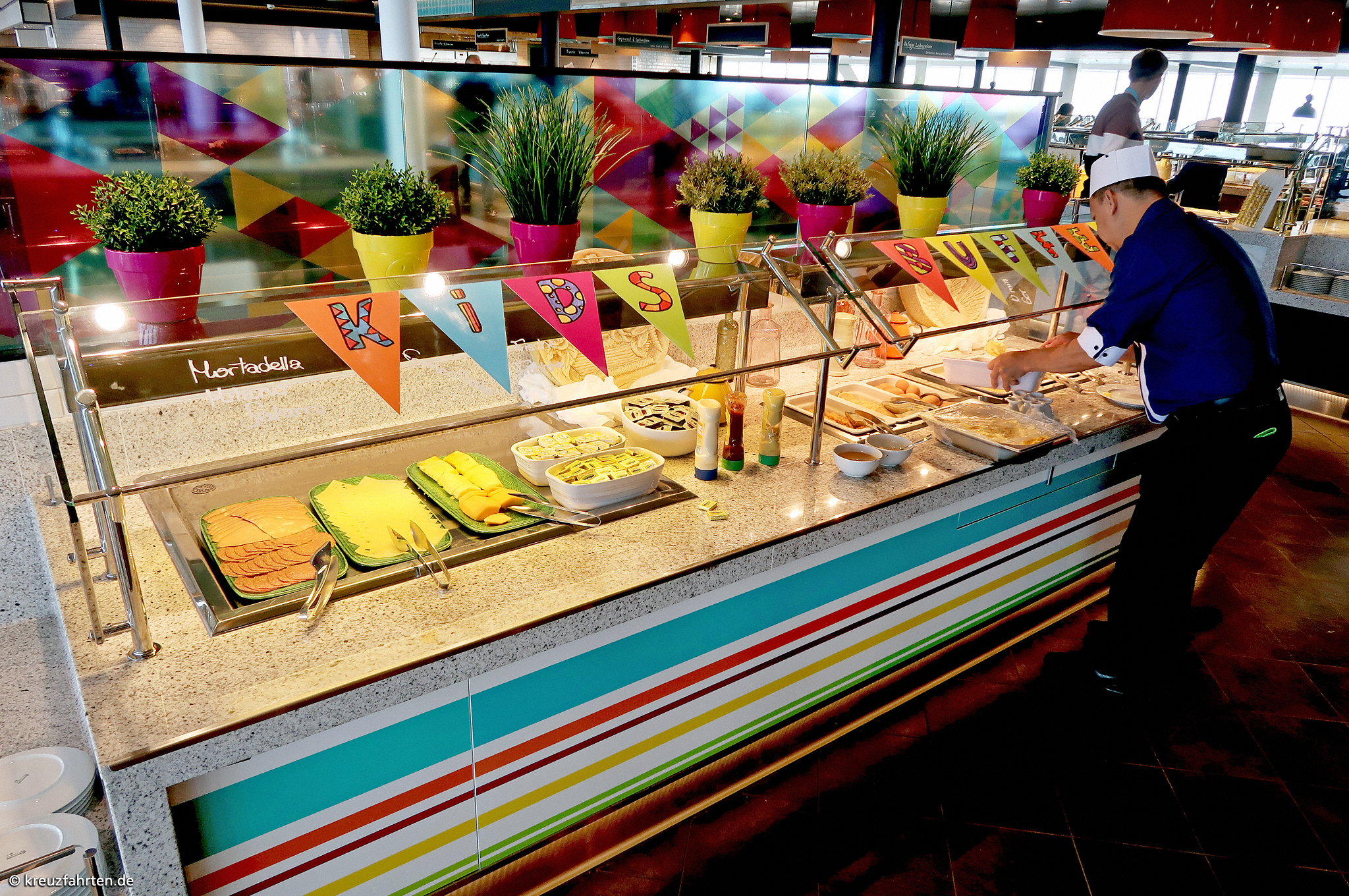 Buffetrestaurant Anckelmannsplatz: verschiedensten Essensstationen, abgesenktem Kinderbuffet und Getränkezapfanlagen zur Selbstbedienung