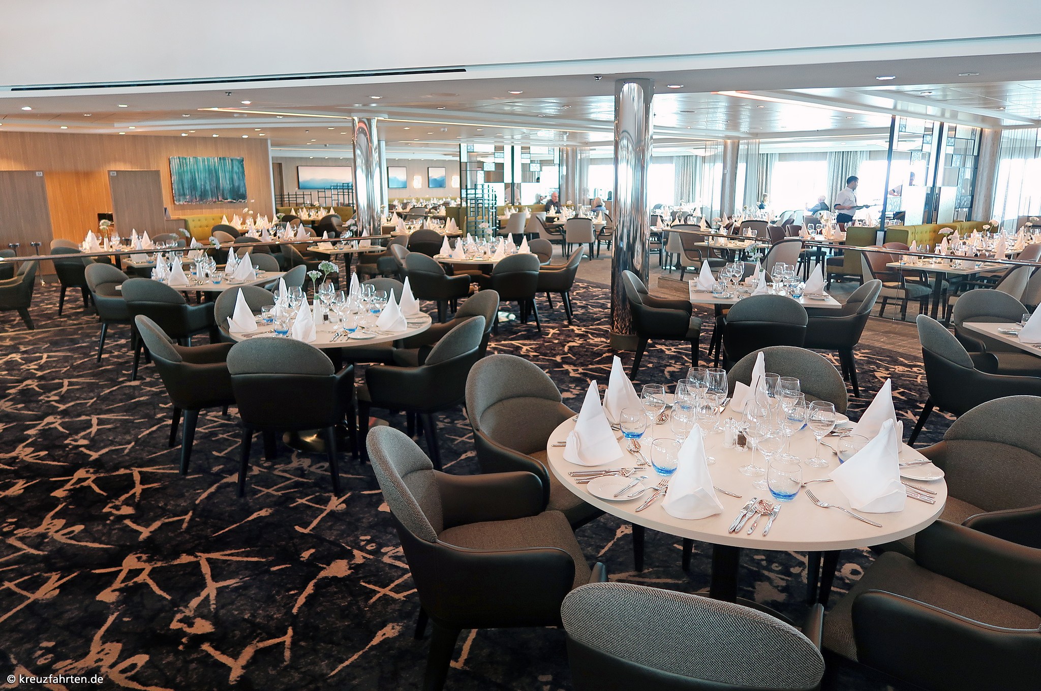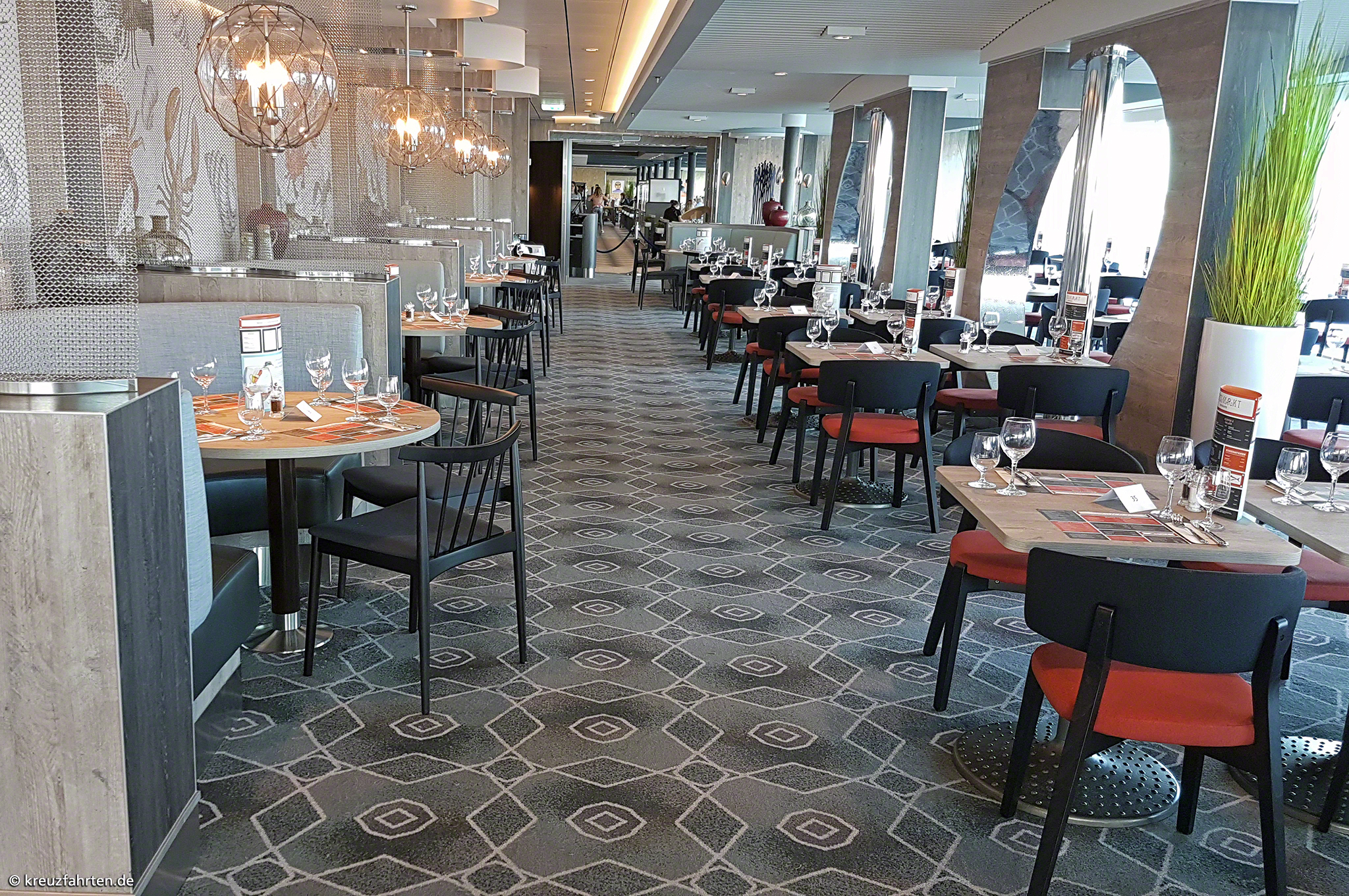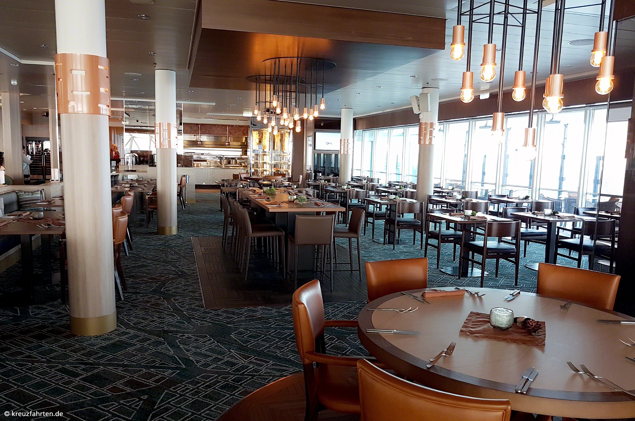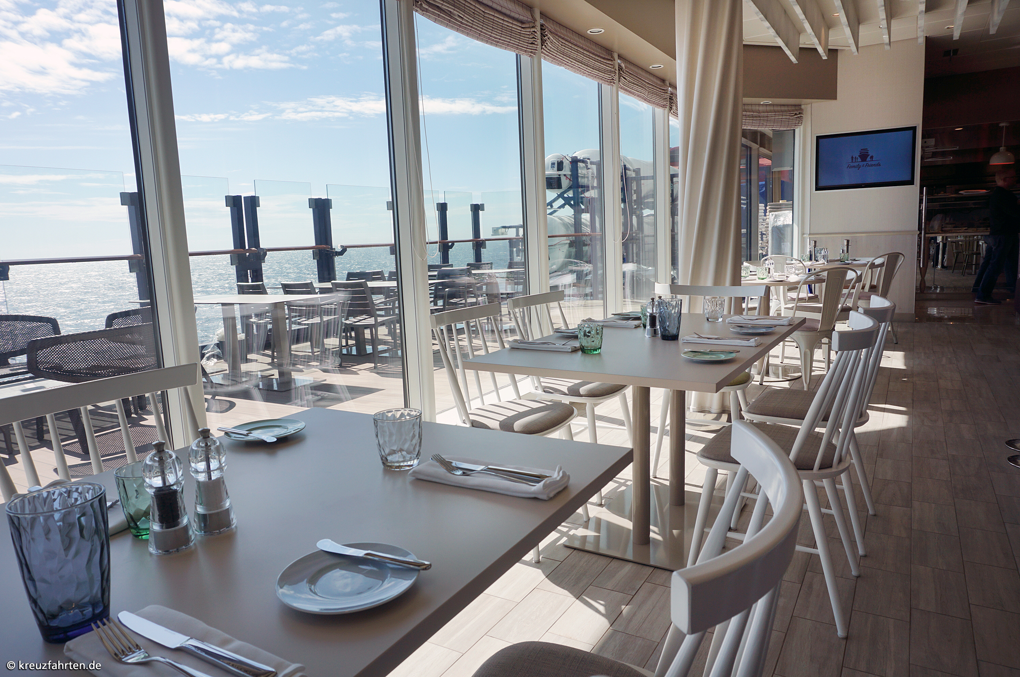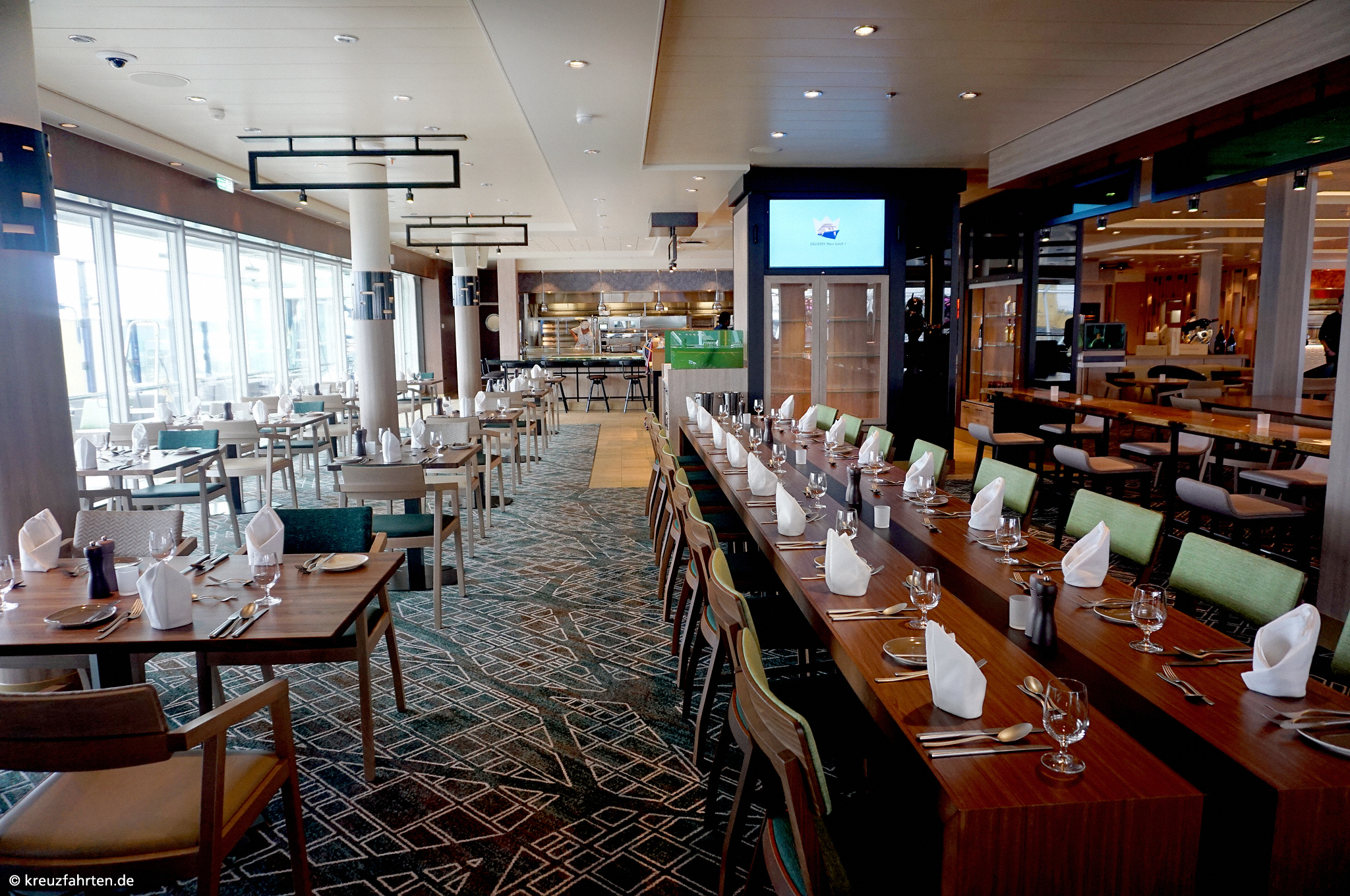 Esszimmer – Lieblingsgerichte: Frühstück, Mittagessen (nur an Seetagen), Kuchen sowie Snacks und Abendessen