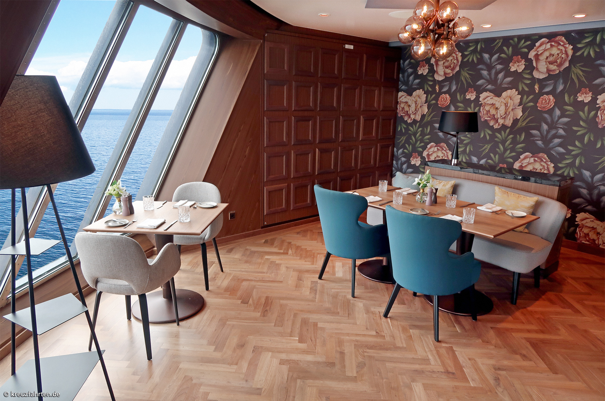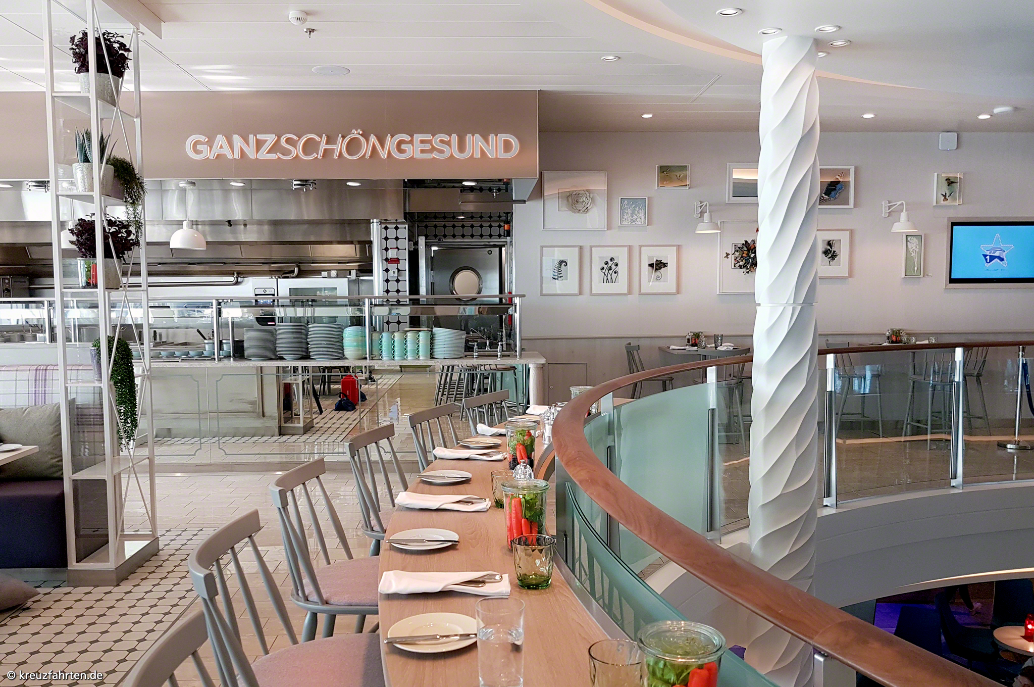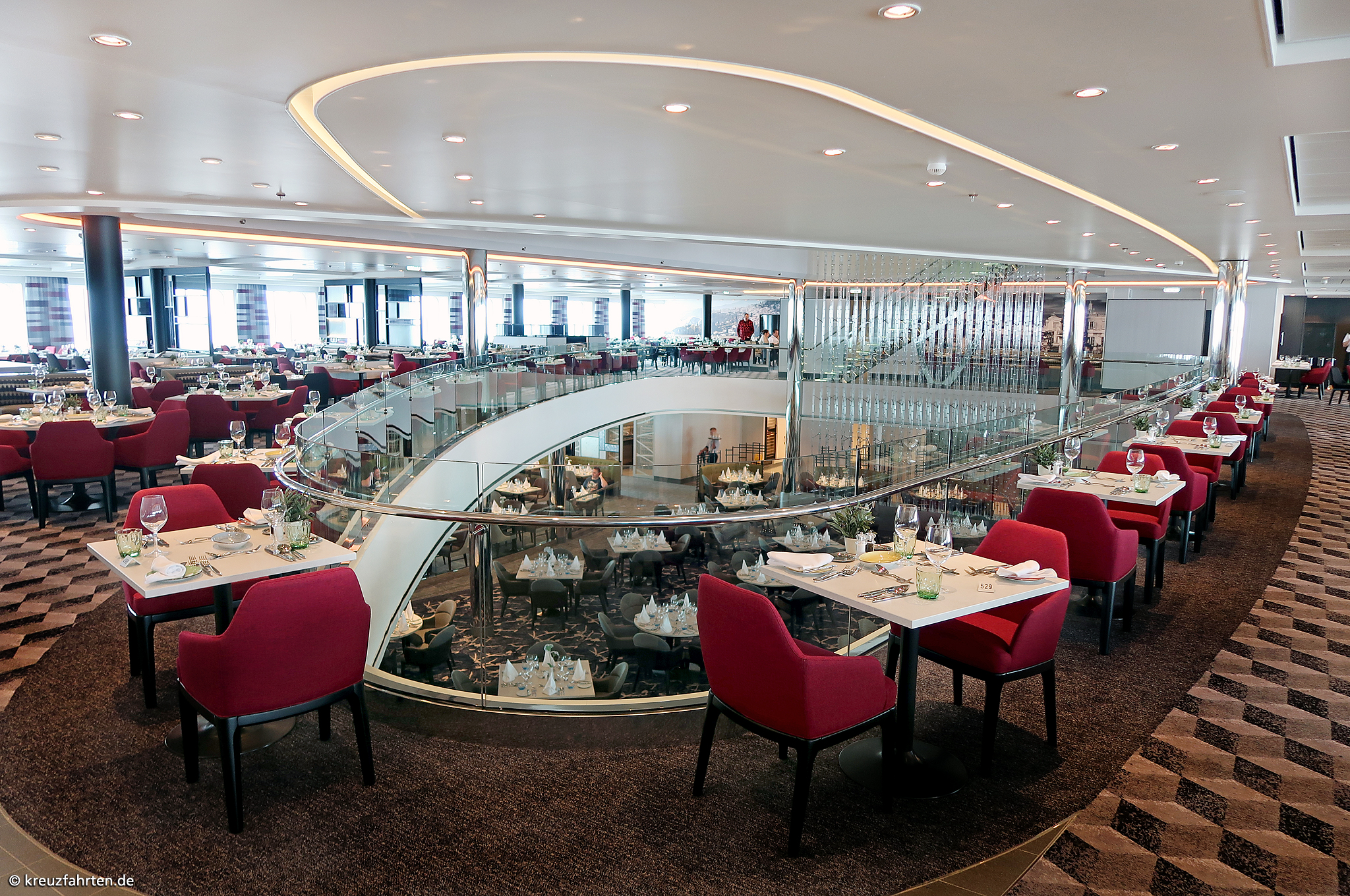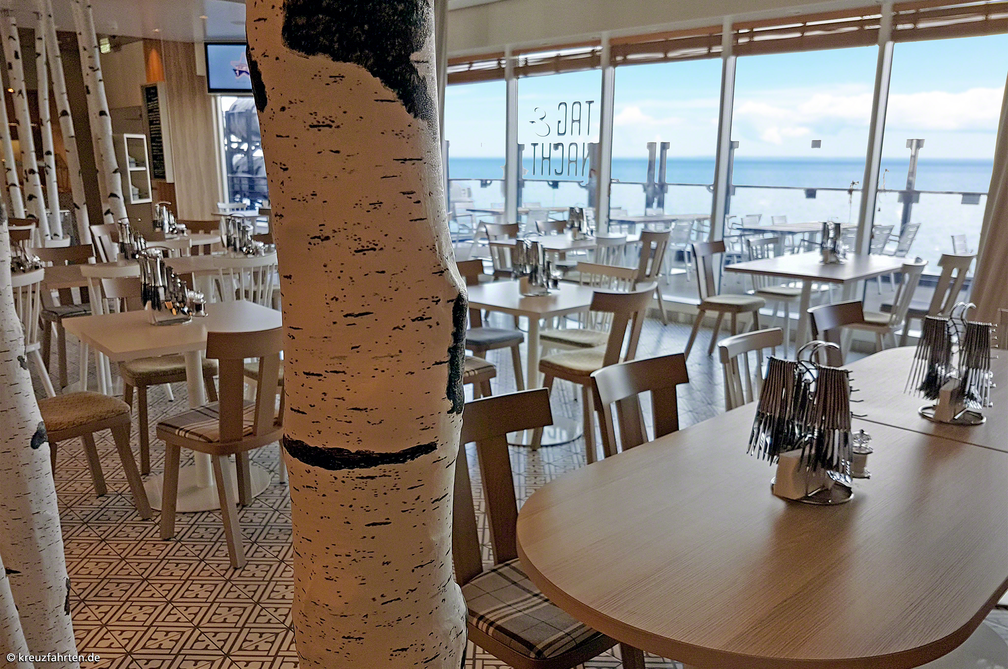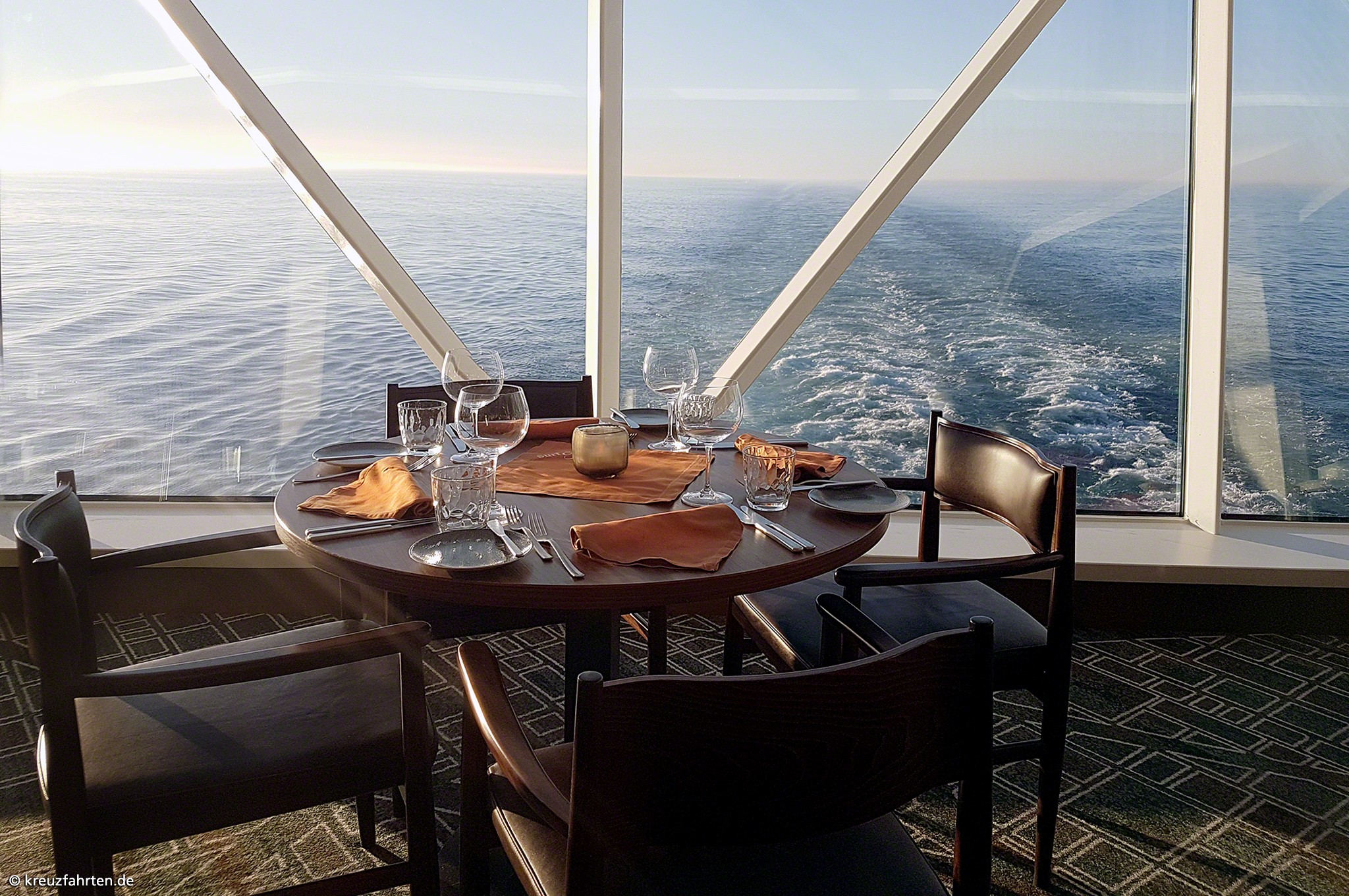 Esszimmer – Lieblingsgerichte: Frühstück, Mittagessen (nur an Seetagen), Kuchen sowie Snacks und Abendessen