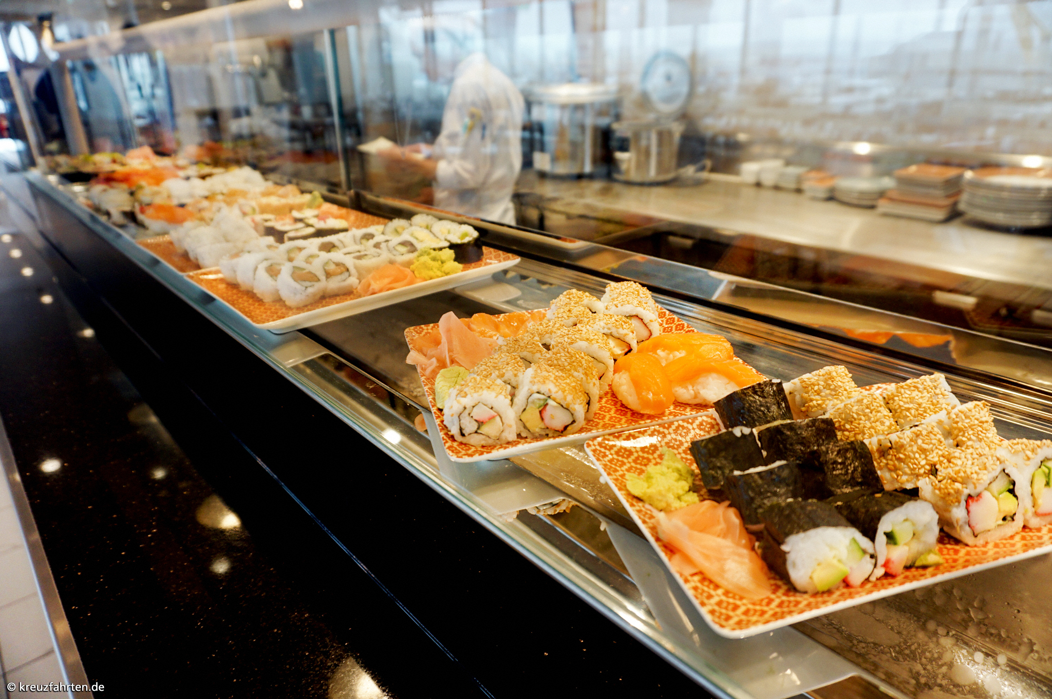 Fischmarkt: Meeresspezialitäten und verschiedene Sushi-Variationen