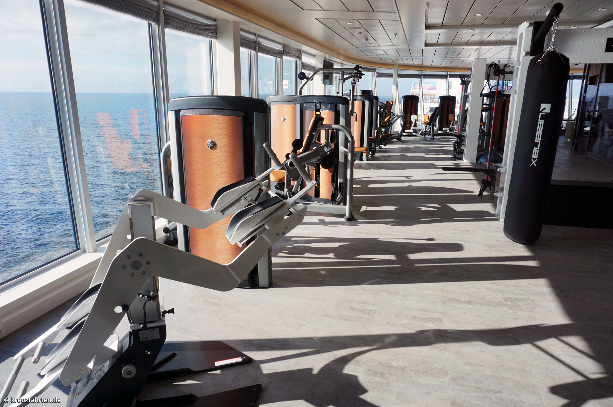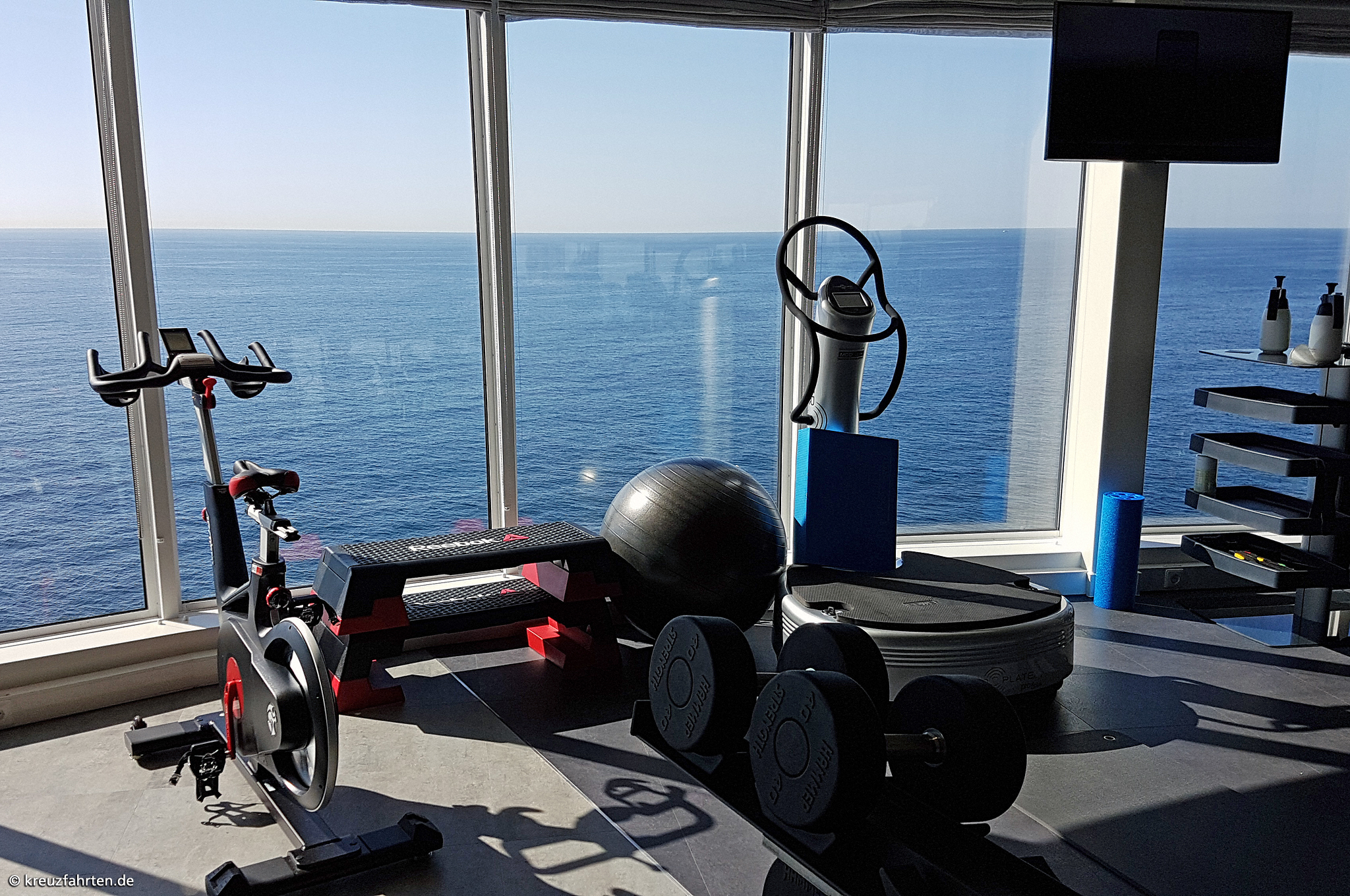 Ganz im Zeichen der Zeit hat TUI Cruises - Mein Schiff ® die Bereiche und Angebote des Konzepts „Ganz Schön Gesund“ – gesunde Ernährung, Sport und Entspannung – auf der Mein Schiff 1 ausgebaut. Diese Neuerungen sind nicht nur in den verschiedenen Lokalen an Bord zu finden, sondern auch an den Orten, die zur körperlichen Betätigung einladen. Beispielsweise der vergrößerte Fitnessbereich auf Deck Brise: Hier können Sie sich bei einem atemberaubenden Blick auf das glitzernde Meer an modernen Fitnessgeräten auspowern. Sie laufen lieber unter freiem Himmel? Dann ab aufs Außendeck, denn hier laufen Sie „wie überm Meer“: Die großzügig angelegte Joggingbahn, ist 438 Meter lang und besitzt eine 6,7 % Steigung. Ballspieler lieben die überdachte Sport-Arena. Eine Multifunktionsfläche ist außerdem mit einer beeindruckenden Kletterwand und einer ausfahrbaren Leinwand ausgestattet.