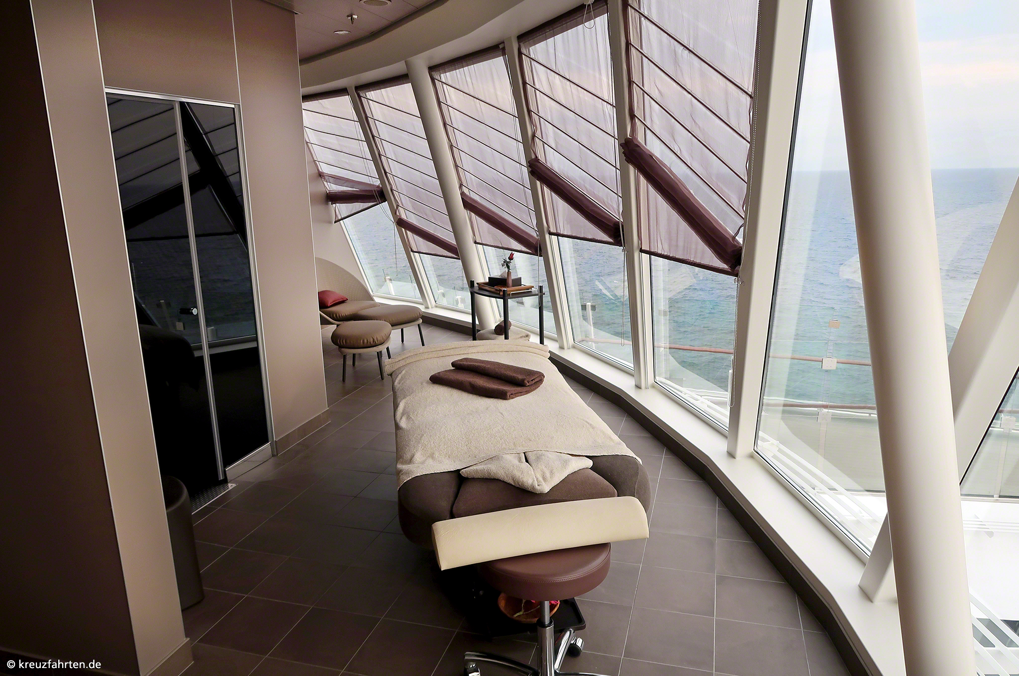 Nach einem anstrengenden Tag an Bord oder an Land bietet der bordeigene Wellnessbereich Spa & Meer genügend Erholungsoptionen. Neben einer großen Sauna mit Meeresblick gibt es verschiedene Ruhezonen. Zu den Wellnessangeboten zählen Kräuterbäder, ein Besuch des Whirlpools und Kosmetikanwendungen, wie zum Beispiel Maniküre und Pediküre, ein Rasulbad, Hamam, Massagen, Saunagänge, Dampfbäder und Ruheecken zum Entspannen. Wer mit einer neuen Frisur in den Abend starten möchte, kann sich beim bordeigenen Friseur einen neuen Haarschnitt schneiden zu lassen.