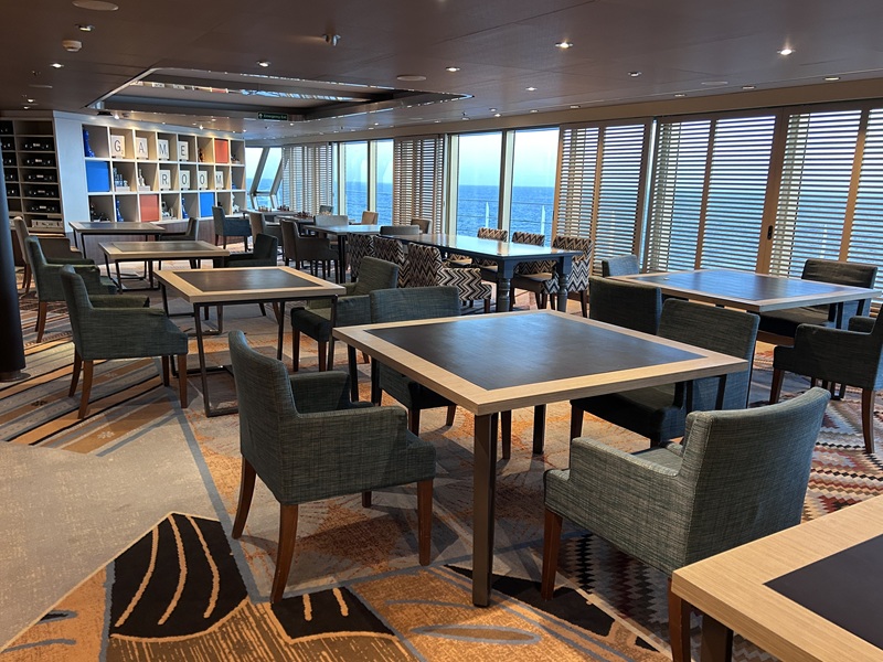 Mein Tag startete früh mit etwas Sport im großzügigen Fitness-Center auf Deck 9 am Bug. Den Sonnenaufgang kann man dort direkt auf dem Crosstrainer erleben. Danach ging ich zwei Decks höher zum Crow‘s Nest, um mir dort die tägliche Kaffeespezialität im Café zu holen. An diesem Tag ist das der Pumpkin Spice Latte. Super lecker und passend zum Herbst. Es stehen auch viele weitere Kaffeespezialitäten zur Auswahl (jeweils gegen Aufpreis, sofern kein Getränkepaket oder Have it All gebucht wurde).