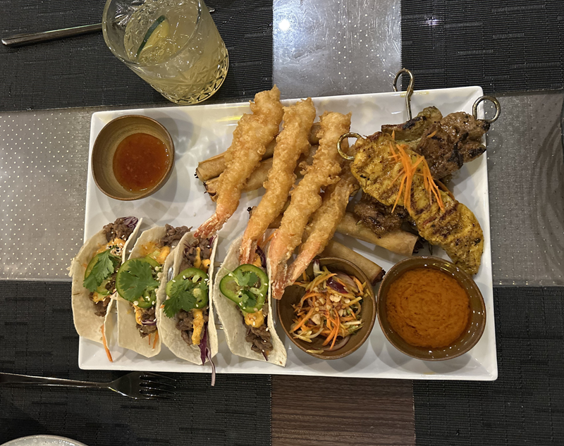 Am Abend besuchten wir das asiatische Spezialitätenrestaurant Tamarind (Deck 10 mittig). Wir hatten uns eine Vorspeisenplatte mit verschiedenen Köstlichkeiten bestellt und zum Hauptgang probierte ich knusprige Ente mit Udon-Nudeln. Wir waren alle begeistert von den asiatischen Spezialitäten. (1-maliger Besuch im Have it All inkludiert oder gegen Aufpreis i.H.V. ca. 35USD buchbar).