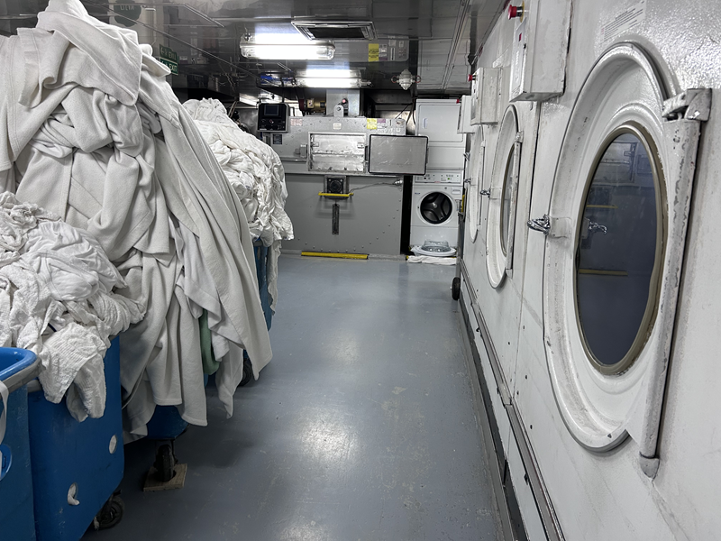 Danach gab es für uns eine Führung durch die Wäscherei und durch die Lagerräume, sowie einen kurzen Blick in das Medical. Sollte man in die unangenehme Situation eines medizinischen Problems kommen, wird man hier ausgesprochen gut versorgt.