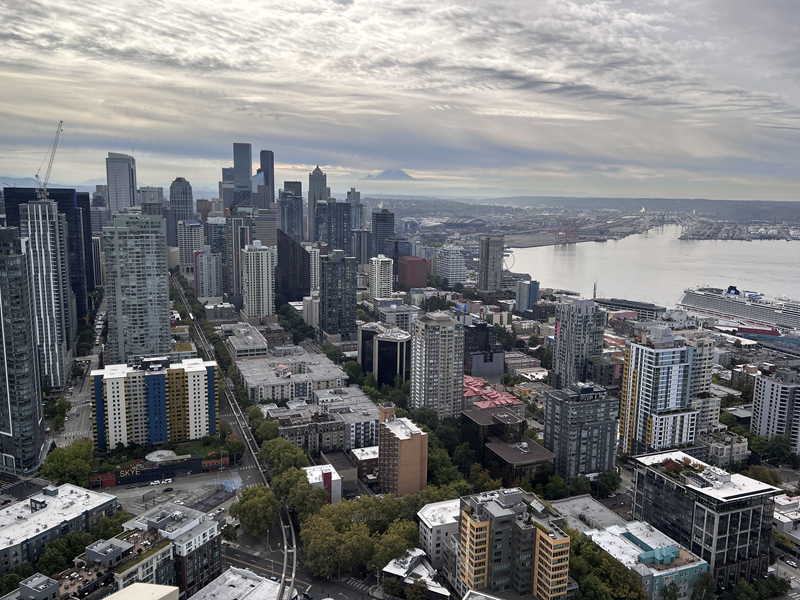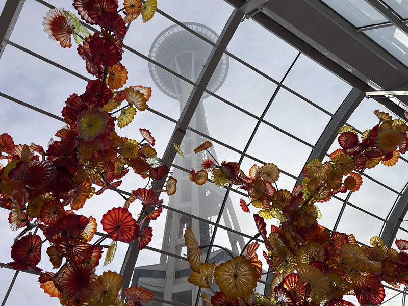 Früh am Morgen wurden wir nach dem Frühstück abgeholt und es warteten nochmal einige tolle Sightseeing-Attraktionen bei Sonnenschein auf uns. Wir konnten auf das Observation Deck der Space Needle. Eine kurze Aufzugfahrt und man hat wundervolle Ausblicke auf Seattle. Außerdem waren wir im Chihuly Garden and Glass, wo wir tolle Artefakte aus Glas bestaunen durften und im Museum of Pop Culture, das mit wechselnden Ausstellungen verschiedenster Musikrichtungen begeistert. Man kann hier auch selbst einige Instrumente ausprobieren.