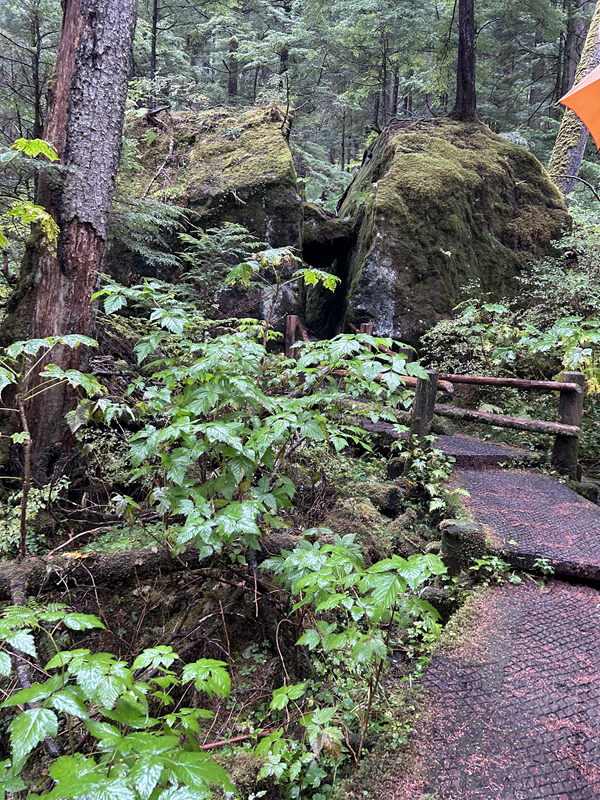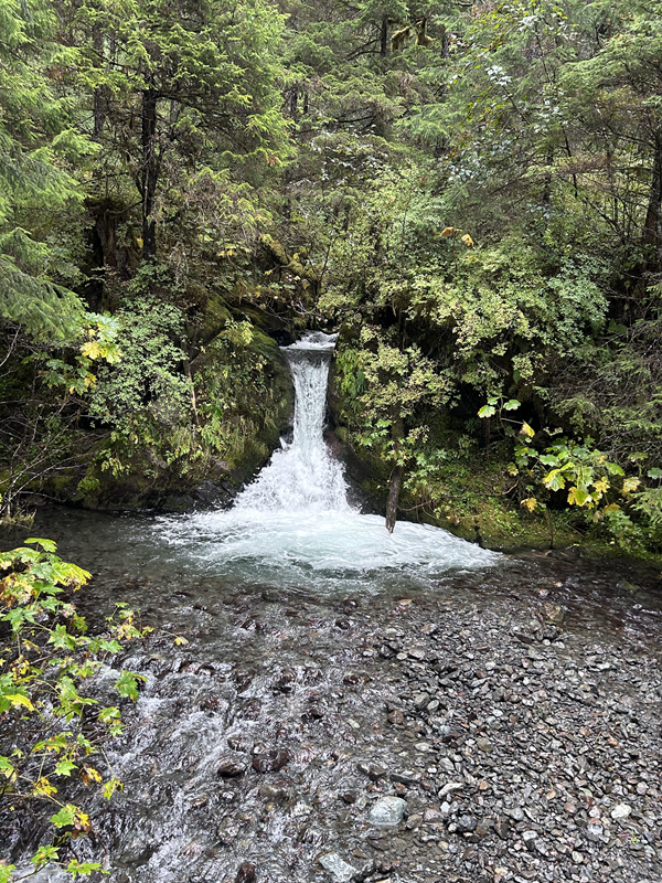In Sitka legten wir nicht direkt in der Stadt an, wurden aber mit einem kostenfreien Shuttle vom Anleger in die Stadtmitte gebracht. Von dort nahmen wir uns ein Taxi und fuhren etwa 20 Minuten zum Herring Cove Trail. Dort angekommen ist man direkt in der Natur und wir sahen den ganzen Trail über keine Menschenseele. Der Wanderweg geht allerdings einige Zeit steil bergauf und ist somit nur zu empfehlen, wenn man gut zu Fuß ist. Auch hier wäre eine Regenhose zu empfehlen und natürlich gute Schuhe, die möglichst wasserfest sind. Vorbei an verschiedenen Wasserfällen, wunderschönen Brücken, moosüberzogenen Steinen und vielen tollen Ausblicken kamen wir am Beaver Lake an. Wir hatten mit unserem Taxi-Fahrer eine Abholzeit vereinbart und mussten daher relativ schnell wieder umkehren. Bei schönem Wetter kann man dort auf jeden Fall noch einige Zeit verbringen oder noch den Beaver Lake Trail um den See erklimmen. Auf dem Rückweg haben wir uns zum Totem Park bringen lassen. Neben dem Museum, konnte man dort auf einer Brücke unzählige Lachse beim Laichen sehen. Zurück in der Stadt haben wir uns noch etwas umgeschaut, bevor wir den Shuttle zurück zum Schiff genommen haben.