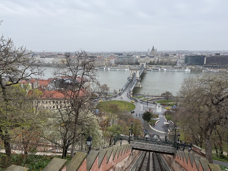 Direkt vom Schiff aus machten wir uns zu Fuß auf den Weg und überquerten erneut die beeindruckende Kettenbrücke. Auf der Buda-Seite angekommen, ging es hinauf zum historischen Burgviertel rund um den Burgpalast. Die leicht ansteigenden Wege wurden schnell mit einem traumhaften Panorama belohnt. Unser Ziel war die berühmte Fischerbastei – und der Ausblick von dort war einfach spektakulär. Von den weißen Türmen aus hatten wir einen perfekten Blick über die Donau, das imposante Parlament und die gesamte Stadt.