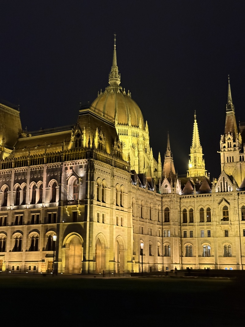 Anschließend spazierten wir über die beeindruckende Kettenbrücke. Von hier aus eröffnete sich uns ein atemberaubender Blick auf die erleuchtete Stadt – auf der einen Seite das majestätische Parlament, auf der anderen der imposante Burgpalast, der hoch über der Donau thront. Die Kombination aus funkelnden Lichtern, der ruhigen Donau und der einzigartigen Architektur machte diesen Abend zu einem unvergesslichen Erlebnis. Budapest zeigt sich bei Nacht von einer ganz besonderen Seite – romantisch, eindrucksvoll und einfach wunderschön.
