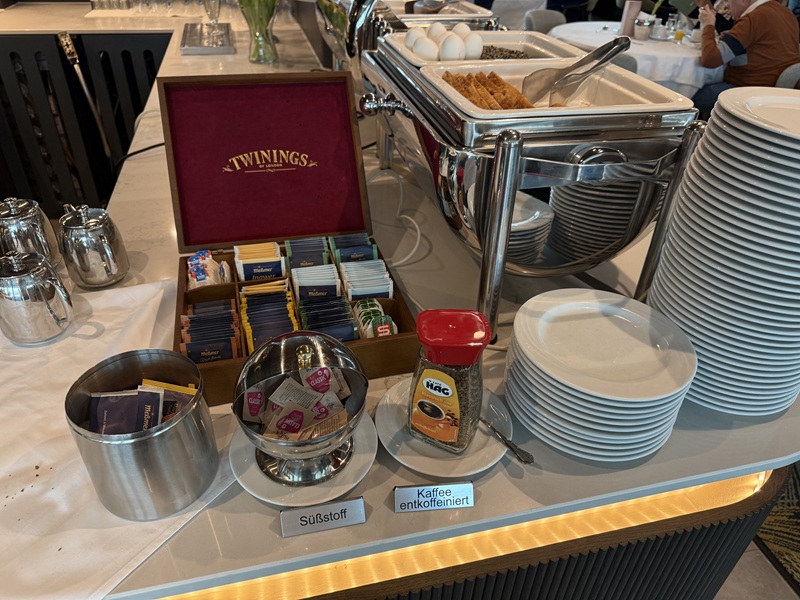 Nach dem Aufstehen gingen wir entspannt zum Frühstück. Auch hier sitzt man an den Plätzen, welche am ersten Tag zugeteilt wurde. Das Frühstück wird in Buffetform serviert. Es ist überschaubar, aber für jeden etwas dabei. Eierspeisen können gerne bei den Kellnern bestellt werden und werden auf Wunsch frisch zubereitet.