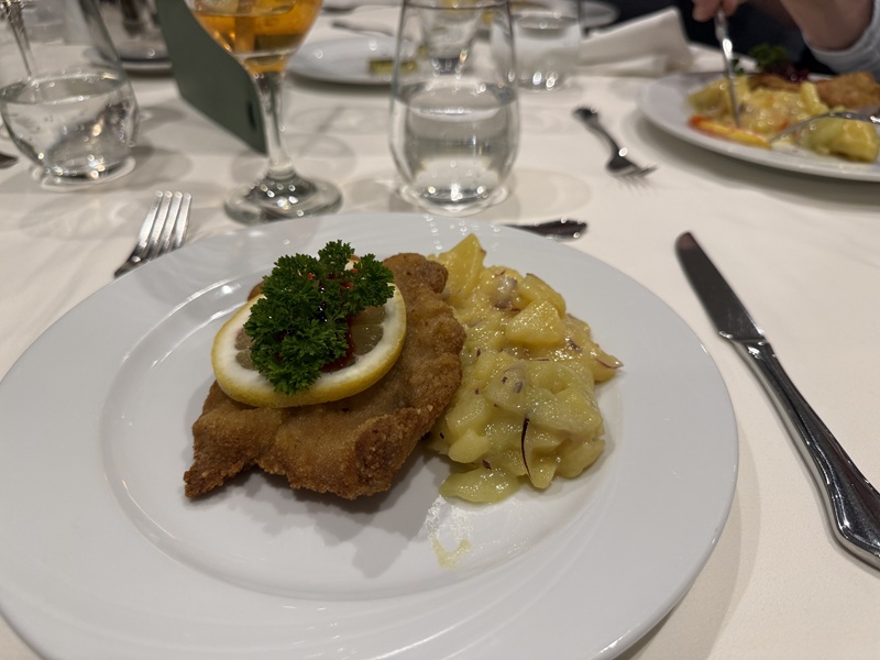 Am Nachmittag machten wir uns schließlich wieder auf den Rückweg zum Schiff. Dort angekommen, freuten wir uns schon auf einen entspannten Abend an Bord. Das Abendessen passte perfekt zum Tag in Wien: Mit klassischem Wiener Schnitzel und einem himmlischen Kaiserschmarrn wurden wir kulinarisch verwöhnt – ein absoluter Genuss und der perfekte Abschluss eines erlebnisreichen Tages.