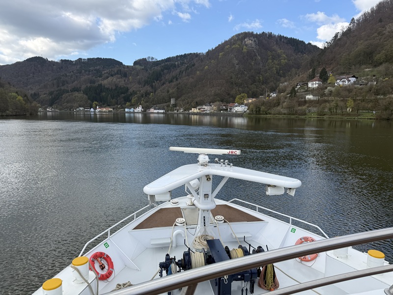 Wieder zurück an Bord erwartete uns der letzte Höhepunkt der Reise: die Fahrt durch die berühmte Wachau. Während das Schiff langsam durch die vorbeiziehende Landschaft glitt, präsentierte sich uns eine der schönsten Flussregionen Europas – sanfte Hügel, Weinberge, kleine Dörfer und Burgruinen wechselten sich ab und sorgten für eine nahezu postkartenreife Kulisse.