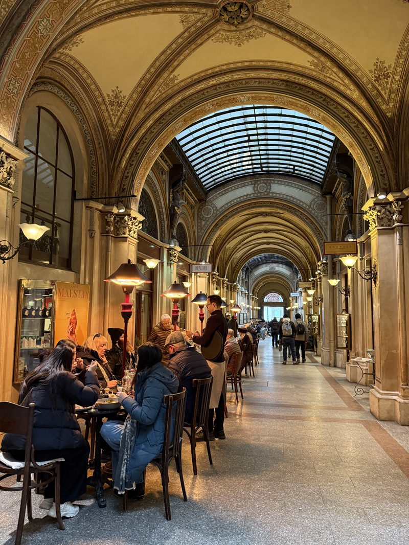 Gestärkt ging es anschließend weiter vorbei am berühmten Hotel Sacher, das für seine legendäre Sachertorte bekannt ist, und durch die elegante Ferstel Passage. Dieser Ort hat wirklich etwas ganz Besonderes – fast schon ein wenig märchenhaft und unglaublich romantisch.