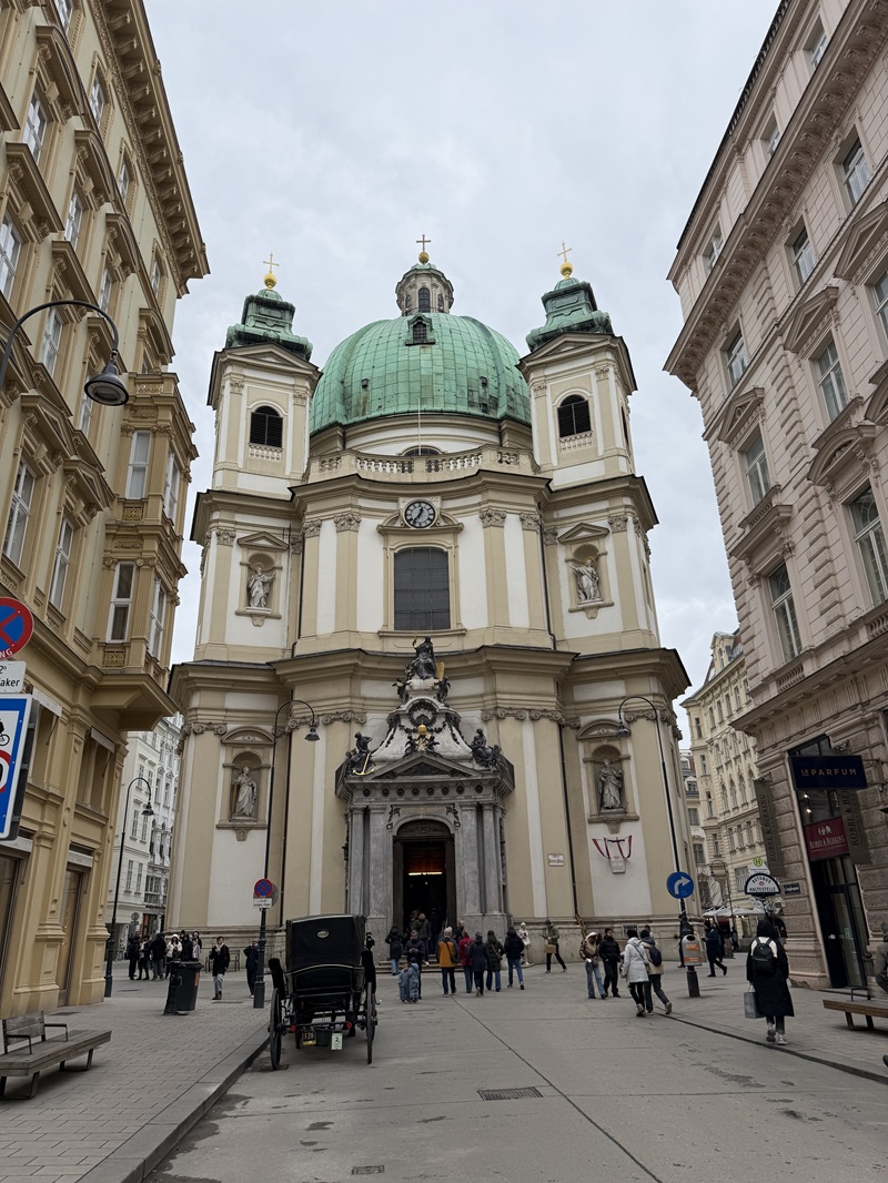 Natürlich durfte auch ein Spaziergang zum Stephansdom nicht fehlen, eines der bekanntesten Wahrzeichen der Stadt. Ebenso beeindruckend war die Peterskirche, die mit ihrer prachtvollen Innenausstattung ein echtes Highlight ist. Trotz der vielen wunderschönen Eindrücke meinte es das Wetter leider nicht ganz so gut mit uns – es war kühl und immer wieder regnerisch. Nach einigen Stunden draußen kam uns deshalb eine Pause genau richtig: Mit einer heißen Schokolade konnten wir uns wieder aufwärmen und neue Energie tanken.