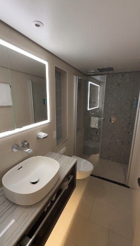 Zunächst ging dann auch schon in einer Gruppe das Programm los, wobei wir uns auch einmal eine der Suiten (302) auf dem Diamanten Deck anschauen durften. Welche viel Raum und eine geräumige entspannte Atmosphäre bietet.