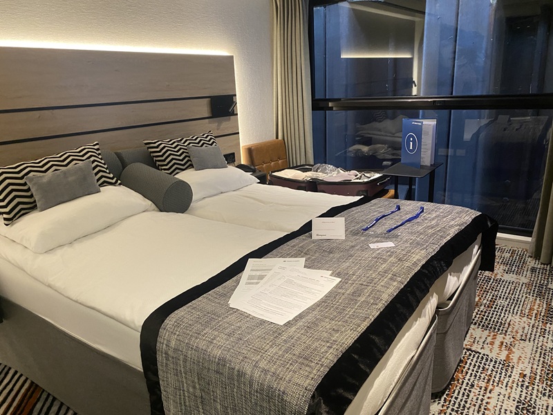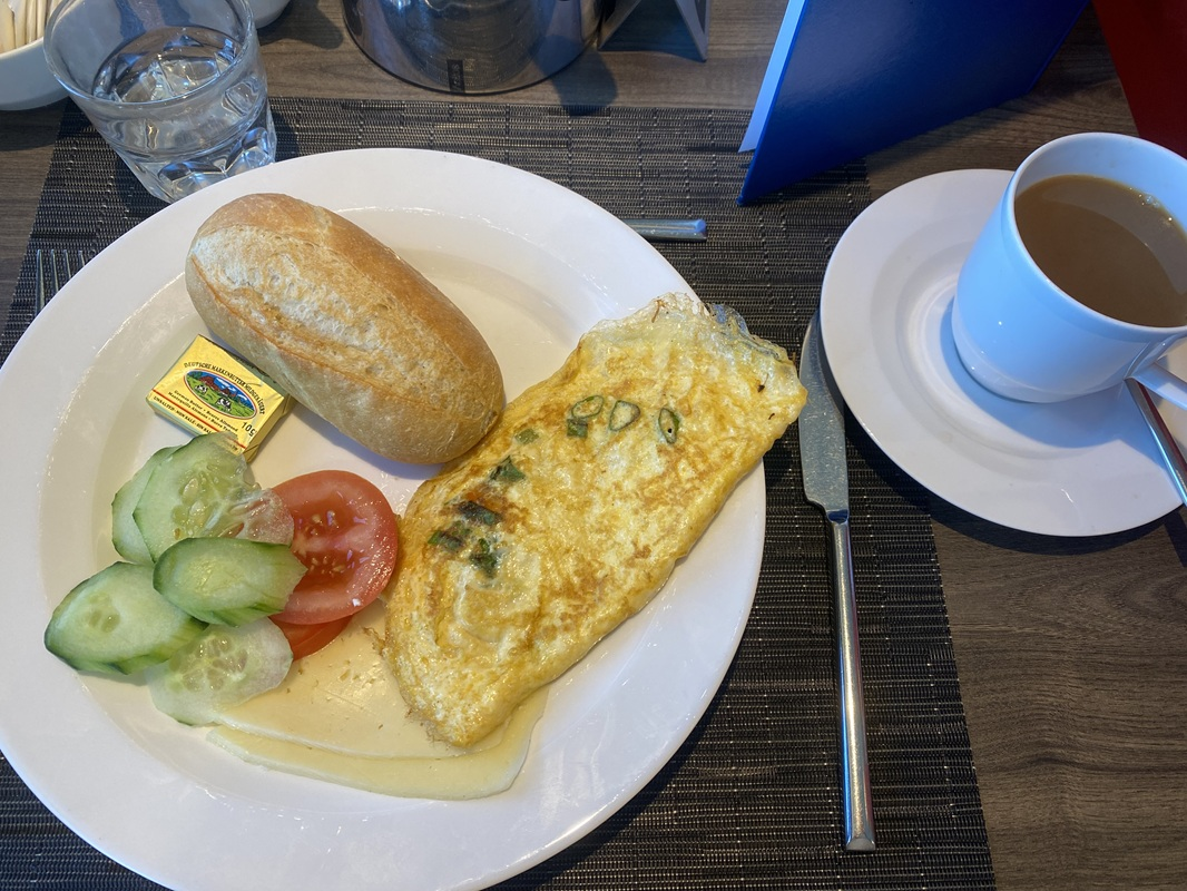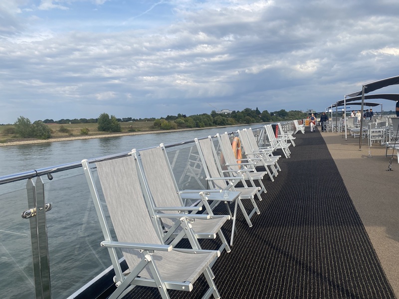 Meine Reise begann gemütlich am Vormittag um 11:16 Uhr am Hauptbahnhof in Hanau. Nach der Ankunft in Köln am Bahnhof Köln Deutz/Messe machte ich mich zu Fuß ca. 20 Minuten auf dem Weg zum Schiffsanleger Deutzer Vorhafen, der etwas außerhalb war. Alternativ kann man auch mit der S-Bahn oder einem Taxi fahren, ich wollte mir nach der langen Fahrt jedoch die Füße vertreten. Ich kam bereits vor der offiziellen Check-In Zeit am Hafen an, konnte aber meinen Koffer schon abgeben und wartete auch nur ein paar Minuten, bis uns die Crew einlud, auf dem Sonnendeck Platz zu nehmen. Hier verweilte ich dann in netter Gesellschaft, bis auch der Rest der Gruppe angekommen war. Gemeinsam machten wir die ersten Gruppenfotos, bevor im Anschluss an den zügigen Check In jeder seine Kabine aufsuchte. Ich bezog Kabine 311 auf dem Oberdeck und wurde dort mit Wasser und dem Programmheft für den heutigen Tag empfangen. Die kompakte Kabine ist modern eingerichtet und mit allen wichtigen Utensilien ausgestattet. Ein gemütliches Bett, ein Kleiderschrank und Flachbildfernseher, eine kleine Sitzecke sowie ein eigenes Badezimmer und entsprechende Hygieneprodukte machen die Kabine komplett. Am besten hat mir der französische Balkon gefallen - den Tag mit einer frischen Brise auf dem Fluss zu starten, ist schon was ganz Tolles. Nachdem ich mich also auf Kabine etwas eingerichtet hatte, war im Anschluss im The Garden Restaurant ein Snackbuffet mit Kaffee, Kuchen und Häppchen aufgebaut. Einen Sekt gab es auch und beim Auslaufen im Außenbereich konnte ich nach und nach die Teilnehmer der Gruppe kennenlernen.