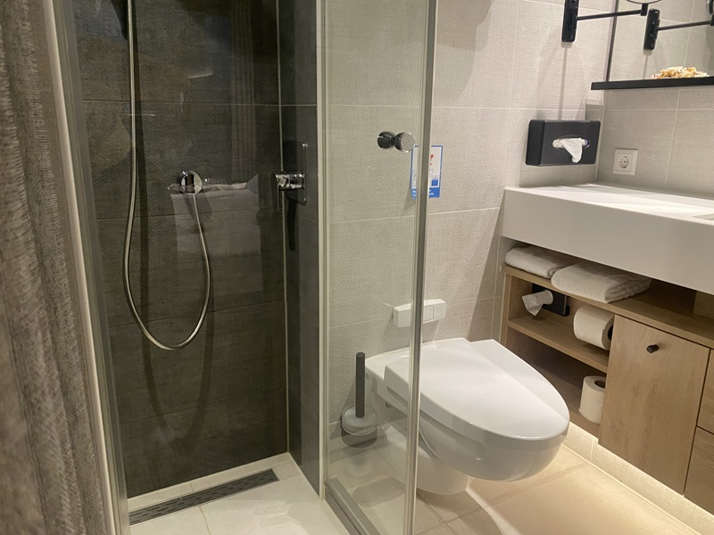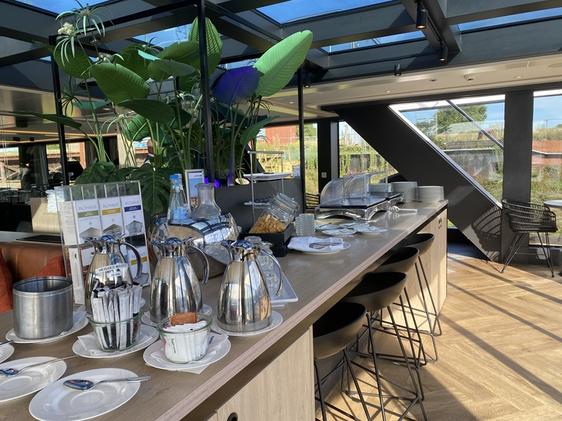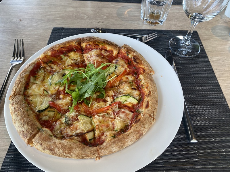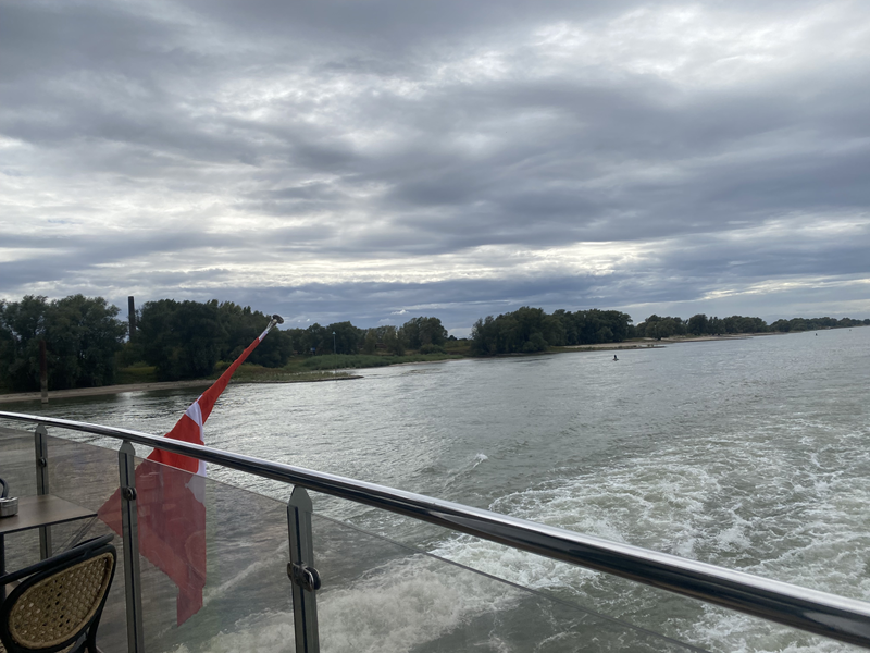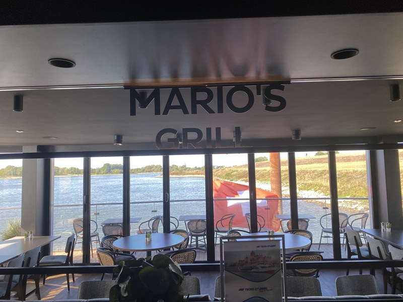 Der dritte Tag begann nach dem Frühstück mit einer ungewissen Aussicht auf das Anlegen im Hafen von Nimwegen. Aufgrund von Stau auf dem Rhein, verpassten wir leider unsere organisierten Ausflüge am Morgen in Nimwegen. Die Fahrt mit dem Pfannenkuchenboot sowie der Ausflug mit einem E-Roller in die Innenstadt mussten daher kurzer Hand storniert werden. Da bis zum späten Vormittag nicht klar war, ob wir nun anlegen können, organisierte unser Cruise Director einen Bus von der nächsten Anlegestelle, um separat nach Nimwegen zu fahren. Der Bus hatte nur begrenzte Plätze, weswegen ich mich dagegen entschied mitzufahren, um den anderen Gästen an Bord den Vortritt zu gewähren. Das Schiff durften wir auf eigene Faust nicht verlassen, weswegen ich mir die Zeit nahm, alle öffentlichen Bereiche des Schiffes genauer unter die Lupe zu nehmen. Im Nachgang genoss ich noch die Sonnenstrahlen an Deck. Zum Mittagessen hatte ich mir dann für 13:00 Uhr einen Platz im Mario´s Grill reserviert. Hier kann man zwischen Burger, Steak, Pizza und Pasta wählen. Das Essen war wirklich köstlich.