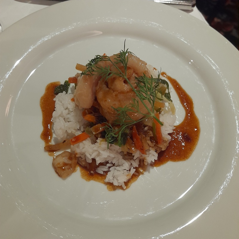 Unser freundlicher Kellner fragt uns, ob wir zum Mittag am 3 Gänge Menü im Restaurant teilnehmen oder den Light Lunch im Salon besuchen wollen.