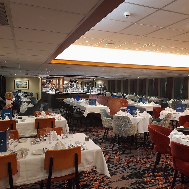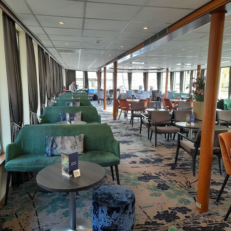 Zum Mittagessen finden wir uns heute im Restaurant ein. Die Sonne scheint durch die Fenster und in gemütlicher Atmosphäre genießen wir das Leben an Bord und haben Zeit das Schiff zu erkunden.