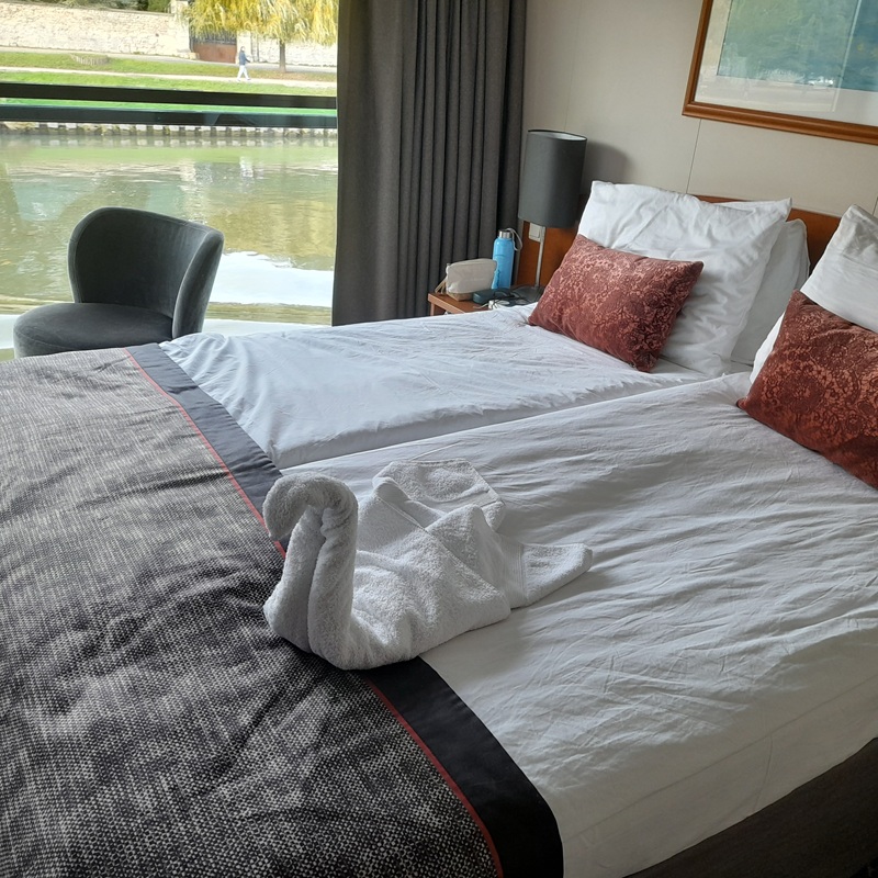 Sieben Tage lang ist die MS Seine Comtesse nun unser schwimmendes Heim. Was uns am nächsten Tag erwartet, verrät der Tagesplan, der allabendlich während des Essens auf die Kabine gelegt wird.