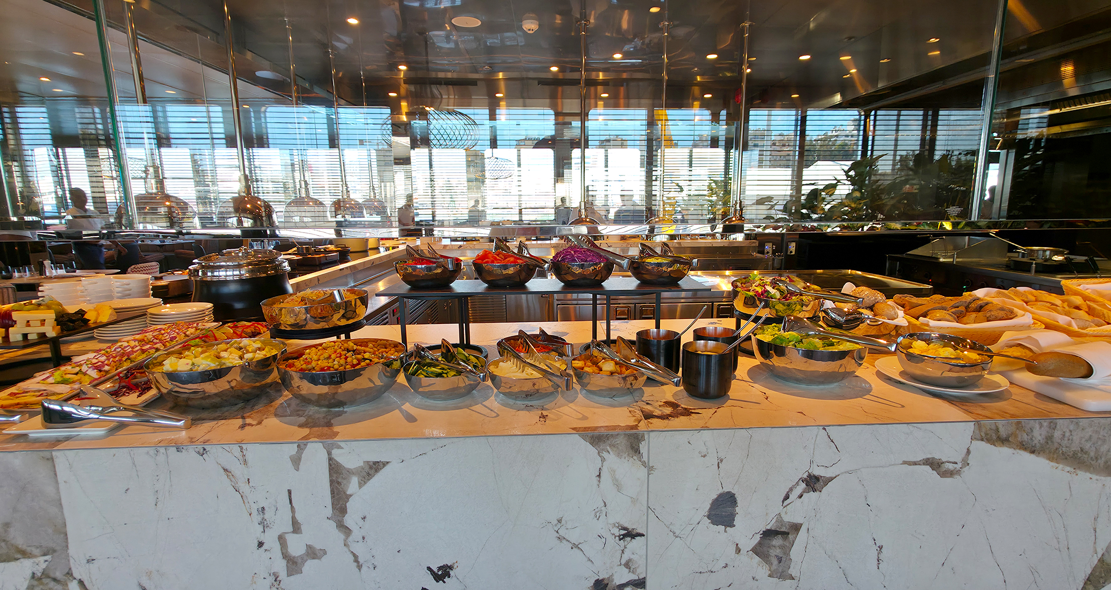 Nach dem Boarding wurde ich mit einem Glas Champagner empfangen – ein gelungener Start. Anschließend erkundete ich neugierig das Schiff und fühlte mich direkt wohl. Zum Mittagessen ging es ins Hauptrestaurant La Cucina, wo ich die erste kulinarische Kostprobe genießen durfte.