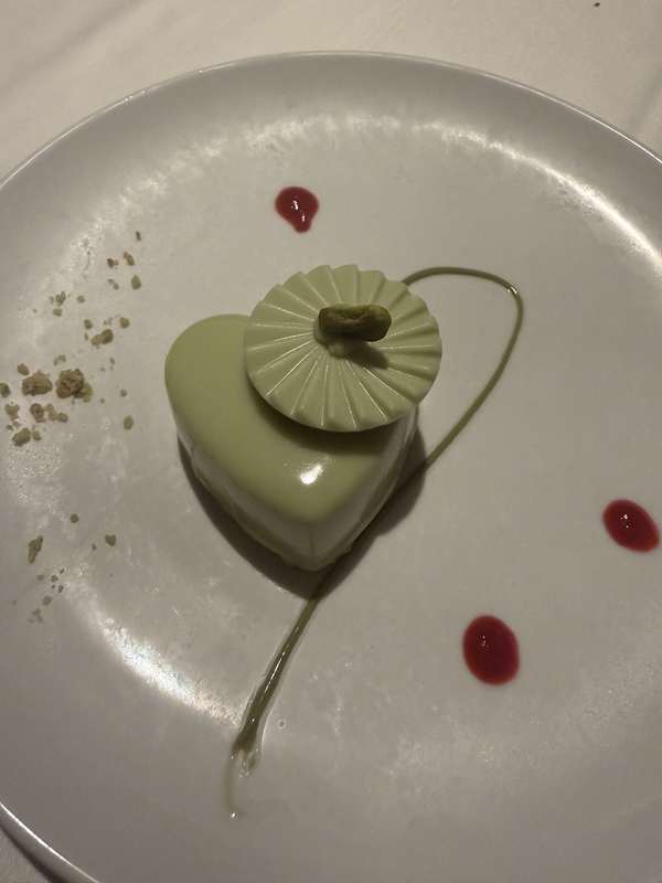Celestial Dining Room ausprobieren. Für mich gab es zur Vorspeise eine Creamy Roasted Cauliflower Soup, zum Hauptgang Spagetti E Aglio Olio und als Nachtisch das Pistachio Love Boat By Cecile. Dazu ein süßer Weißwein und ich war völligst satt, als wir das Restaurant verließen. Wir trafen uns ein letztes Mal mit unseren neuen Freunden für eine Commedy Show in der