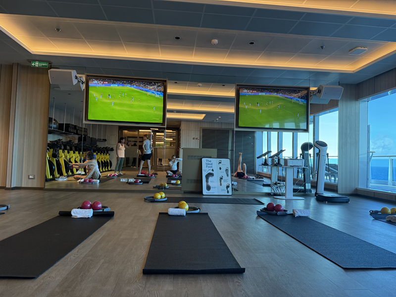 Fitnessstudio auf Deck 18 auch noch einen Besuch ab, um mich für zwei Sportkurse im Laufe der Reise einzutragen. Im