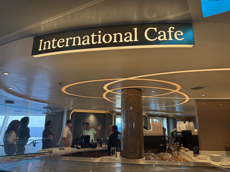 International Cafe´, welches Küchlein, Törtchen und Süßspeisen aus aller Welt anbietet. Die Speisen sind für alle Gäste an Bord inkludiert, den Kaffee zahlt man, außer man hat im Voraus das
