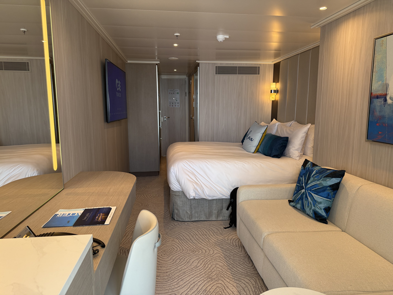 Als wir endlich auf dem Schiff waren, bezogen wir zuerst unsere Balkonkabine 14253. Die Kabine ist geräumig und modern gestaltet, sogar mit Schlafcouch ausgestattet.