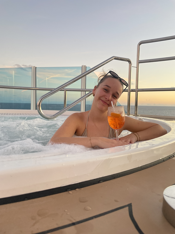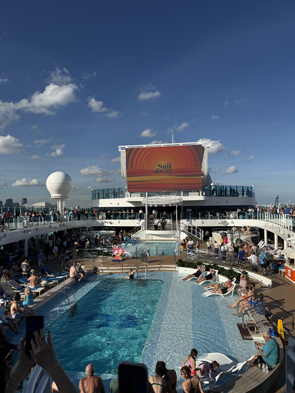 Den Nachmittag verbrachten wir primär bei dem ein oder anderen Glas Aperol Spritz am Pooldeck und verfolgten die Sail Away Party und das Auslaufen aus