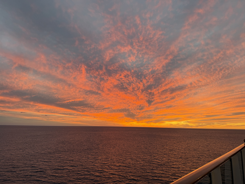 Wake View Terrace vorbei, bevor ich mich für den zweiten und letzten inkludierten Sportkurs bereit machte. Am Nachmittag stand die Strech & Release Class an und im Anschluss verbrachte ich noch eine gute halbe Stunde im Fitnessstudio, bis mich der atemberaubende Sonnenuntergang raus an Deck zog.