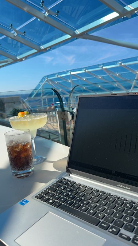 Heute begann mein Tag mit einer online Vorlesung in Statistik. Dafür suchte ich mir einen ruhigen Spot im adults only Bereich und bestellte für die Gemütlichkeit einen 24k Margarita und eine Diet Coke. Gegen Mittag hatte ich es geschafft und entschied mich, heute im