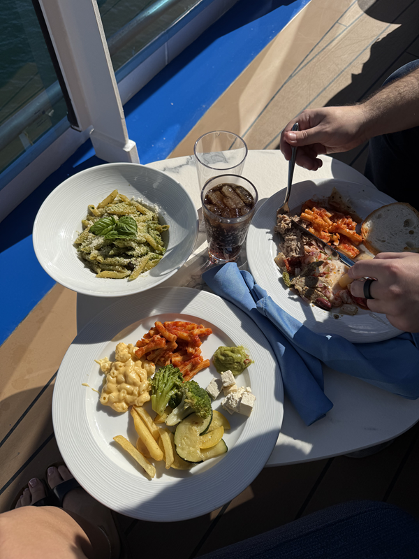 Star Princess. Das Mittagessen haben wir im Außenbereich des Restaurants zu uns genommen während uns die Sonne angestrahlt hat.